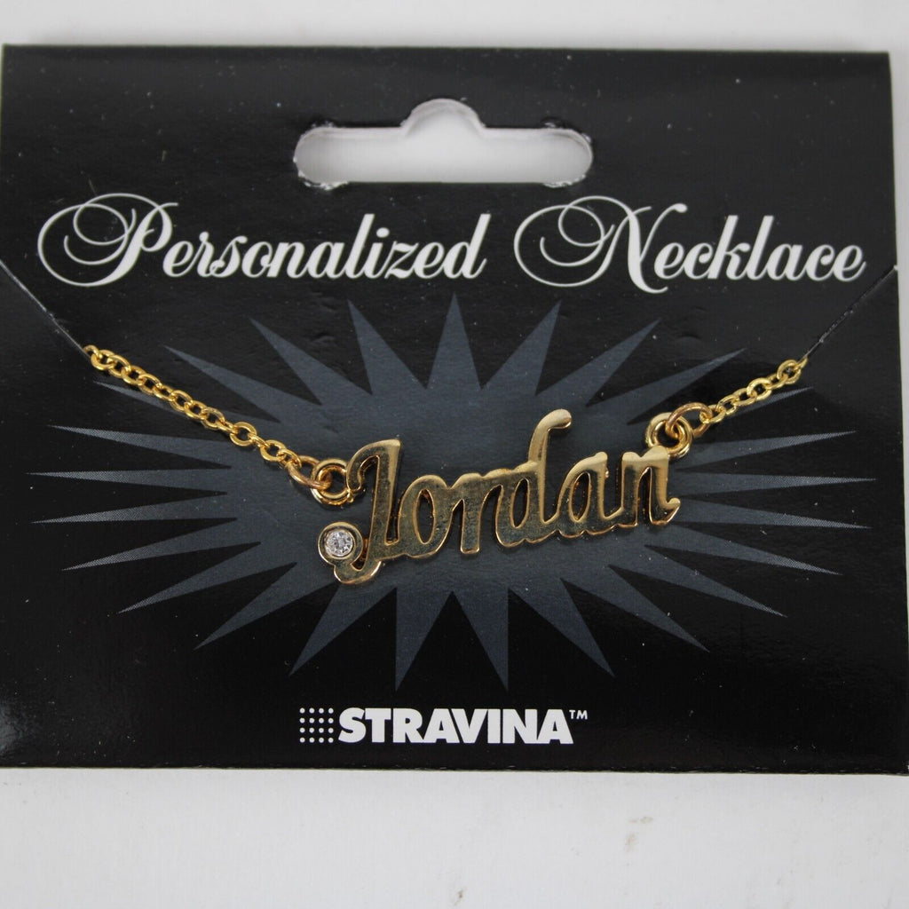 JORDAN NEW Name Goldtone Rhinestone Accent 14.5" w 4.5" Multi Ring Ext Necklace