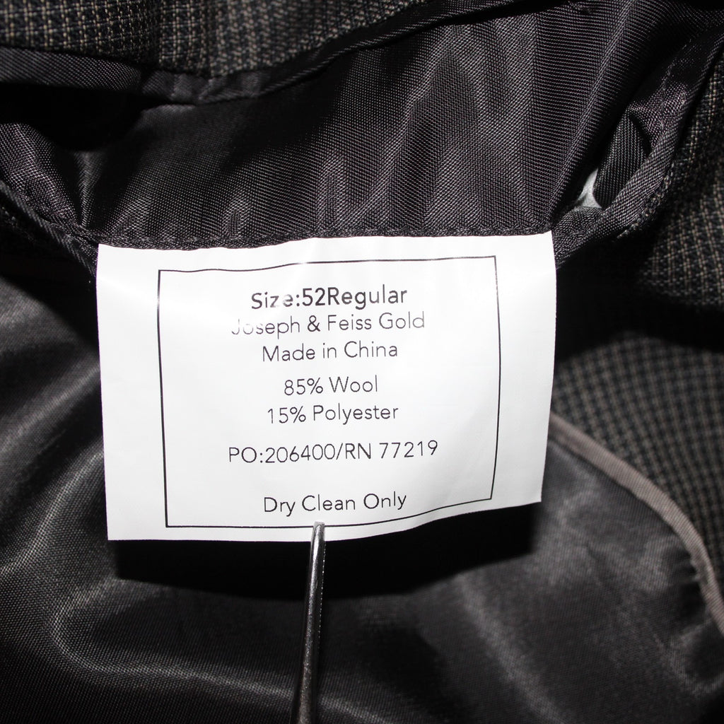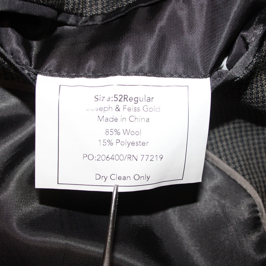 Joseph Feiss 52R Blazer Jacket Gray Black Two Button Wool Polyester Blazer