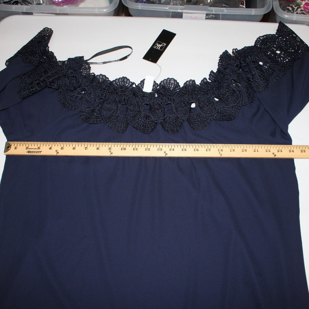 Joseph Ribkoff Dress NEW Sz 18 Navy Blue Embroidered Lined 100% Poly Dress