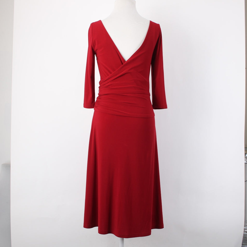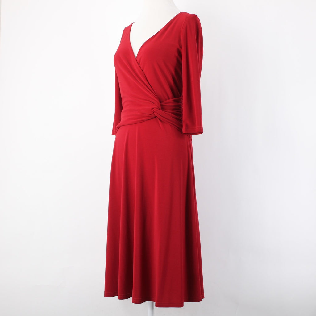 Joseph Ribkoff Dress Sz 6 Red V Neck 3/4 Sleeve Fit Flare Faux Wrap Poly Dress