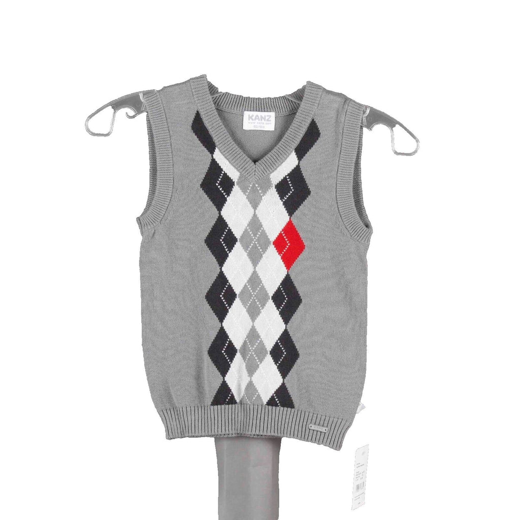 Kanz NEW Sz 12 Mo Gray Red Argyle V Neck Cotton Boys Sweater Vest