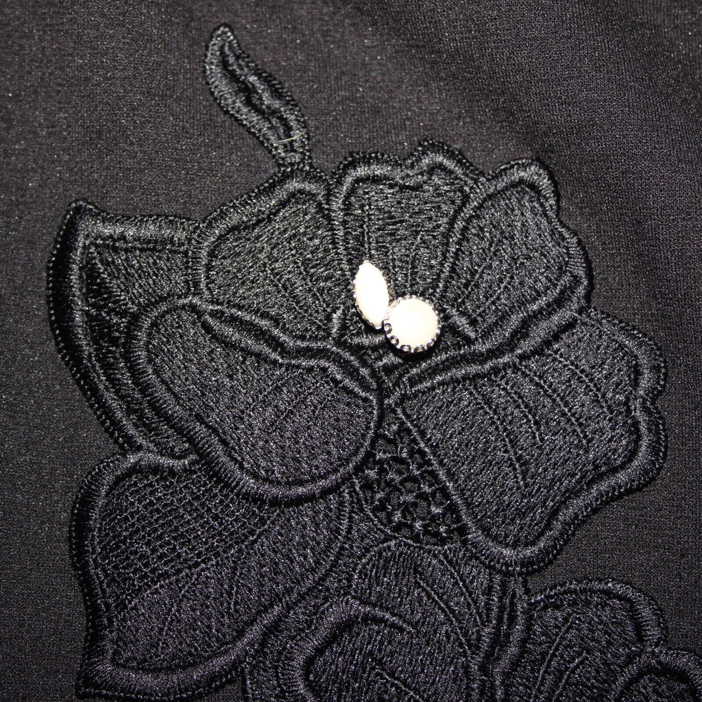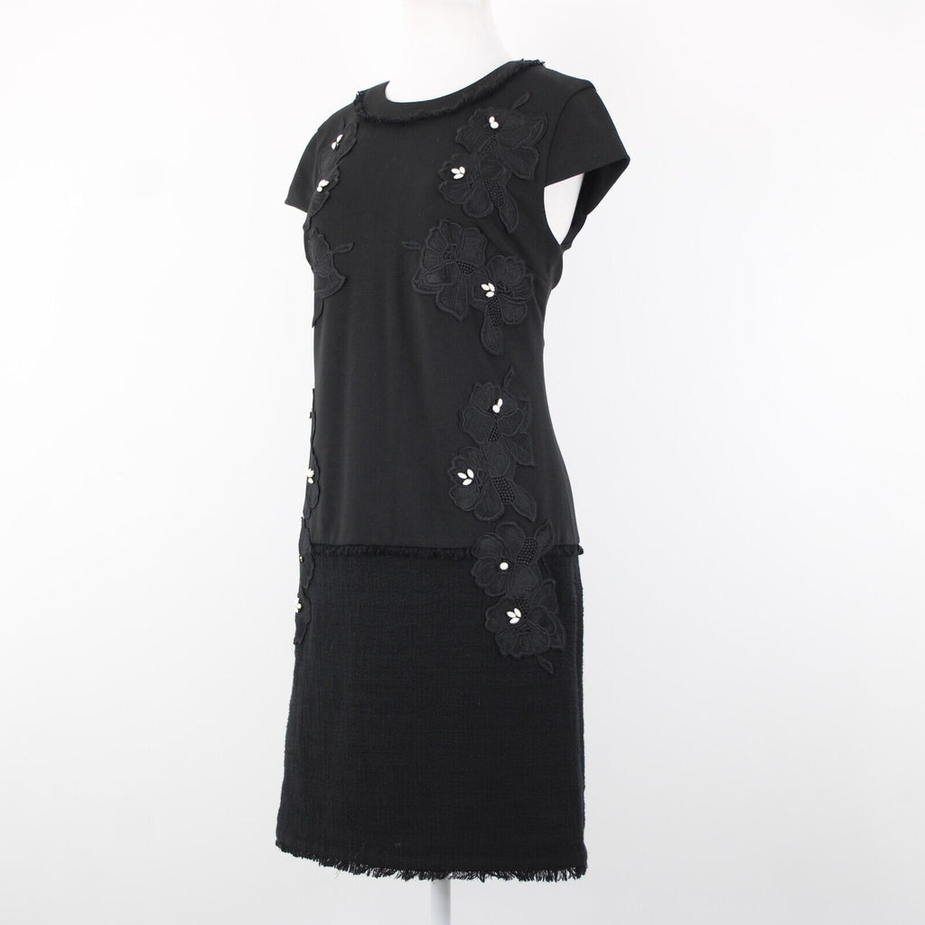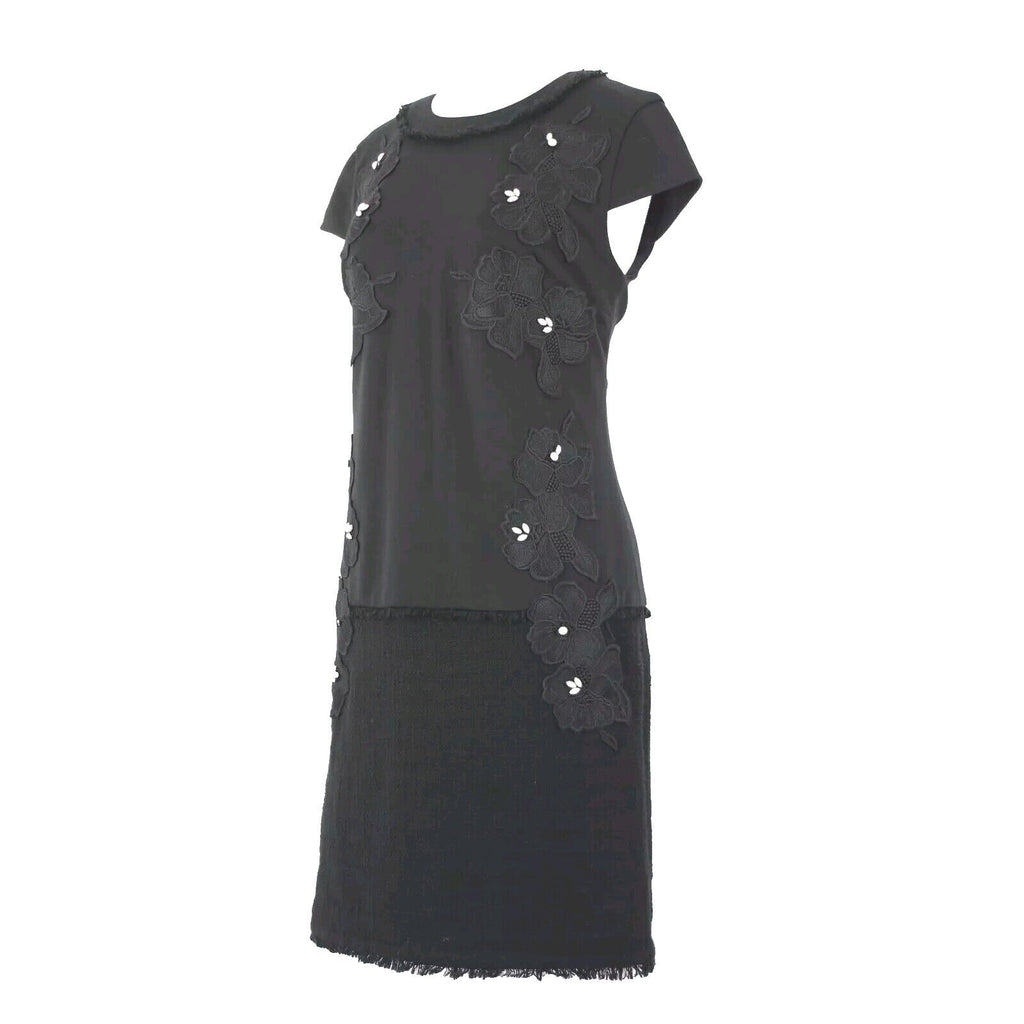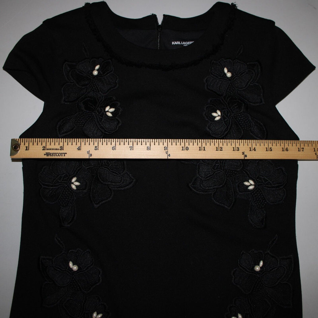 Karl Lagerfeld Sz 4 Black On Black Pearl Applique Floral Lined Poly Rayon Dress