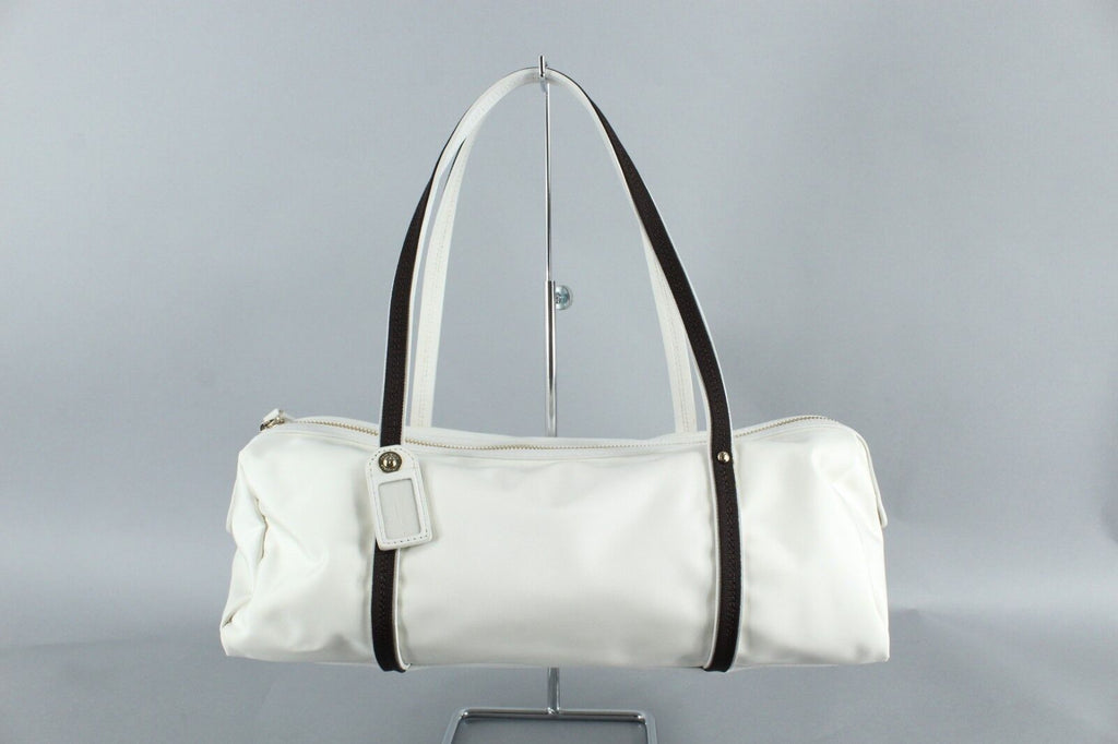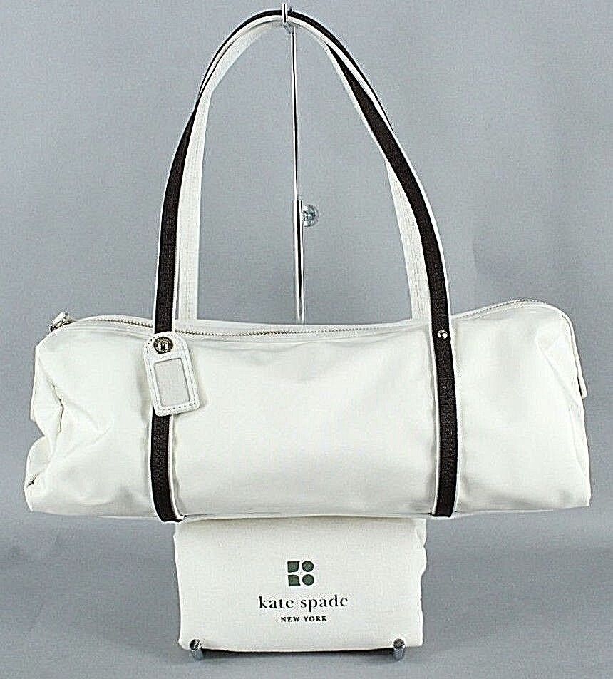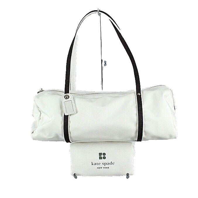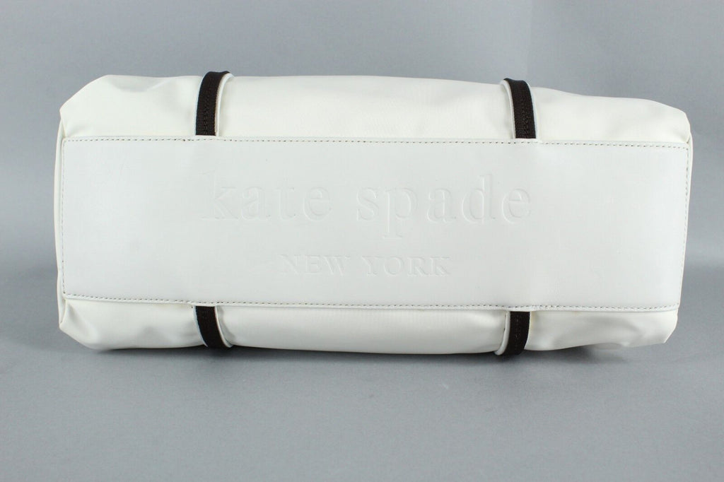 Kate Spade 14 x 5 Ivory Nylon Brown Gold Zip Nylon Water Resist Lining Purse