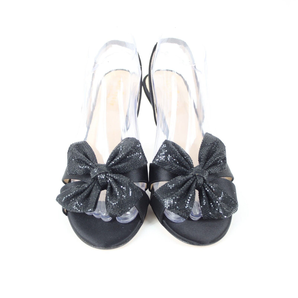 Kate Spade NEW $205 Marlena Sz 9.5 M Black Glitter Satin Upper Leather 3" Heels
