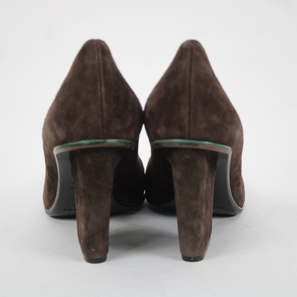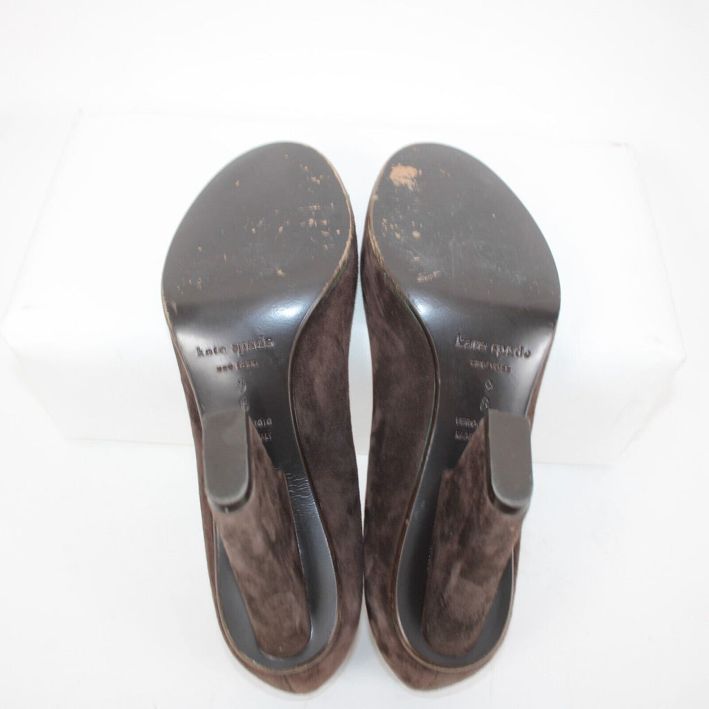 Kate Spade Sz 9 B Brown Green Trim Slip On Suede Upper Leather Inner 3" Heels