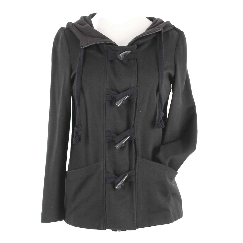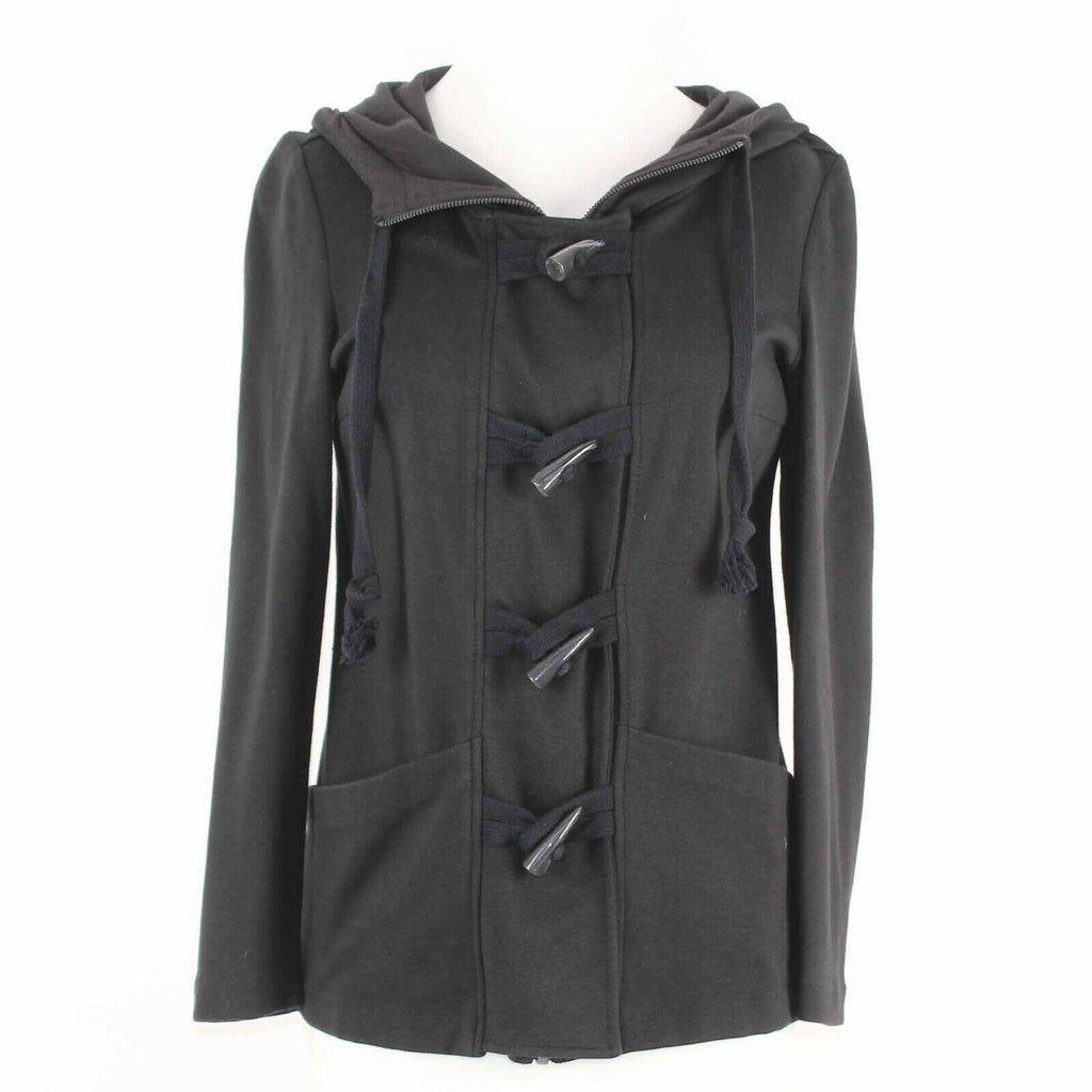 Kensie Sz S Black Button Zip Up Hooded Pockets Cotton Blend Jacket