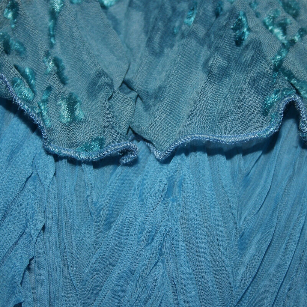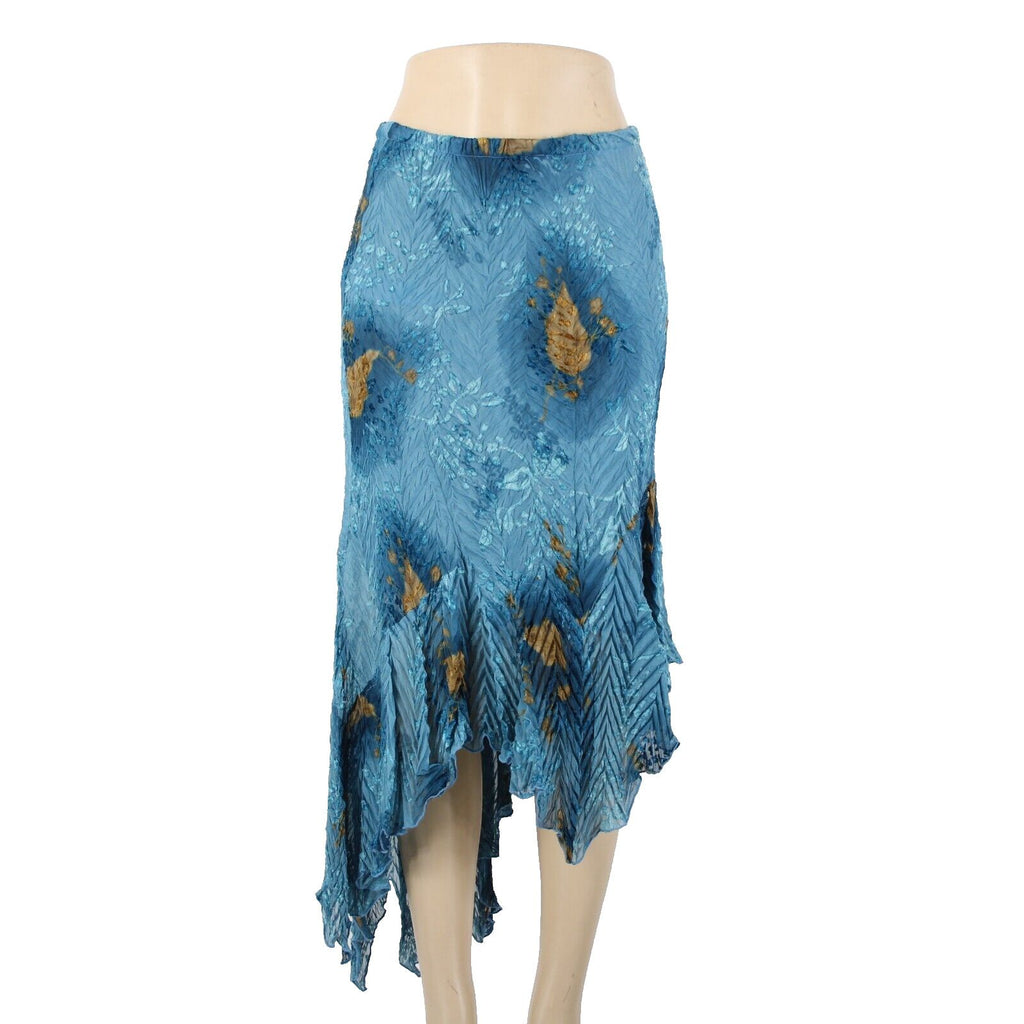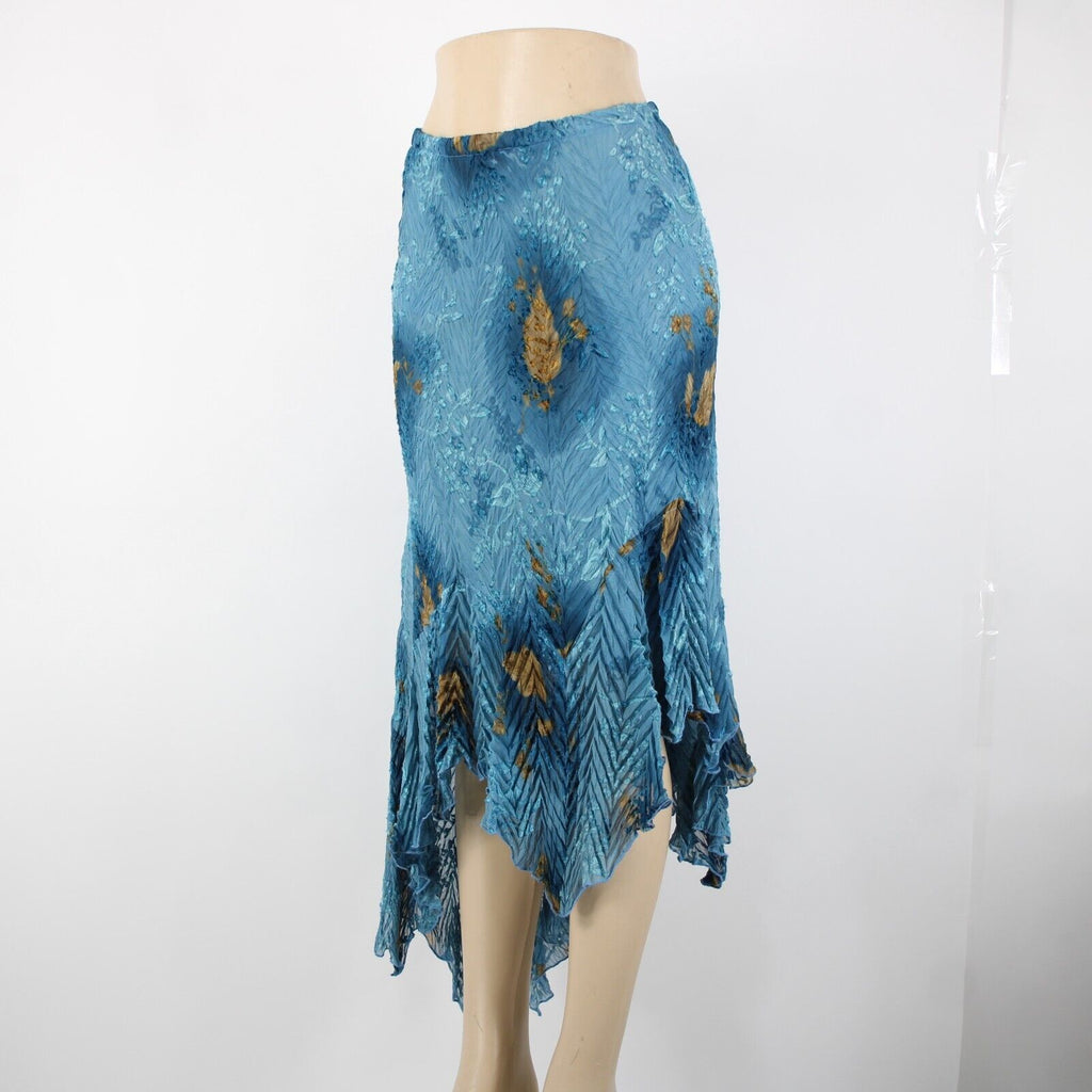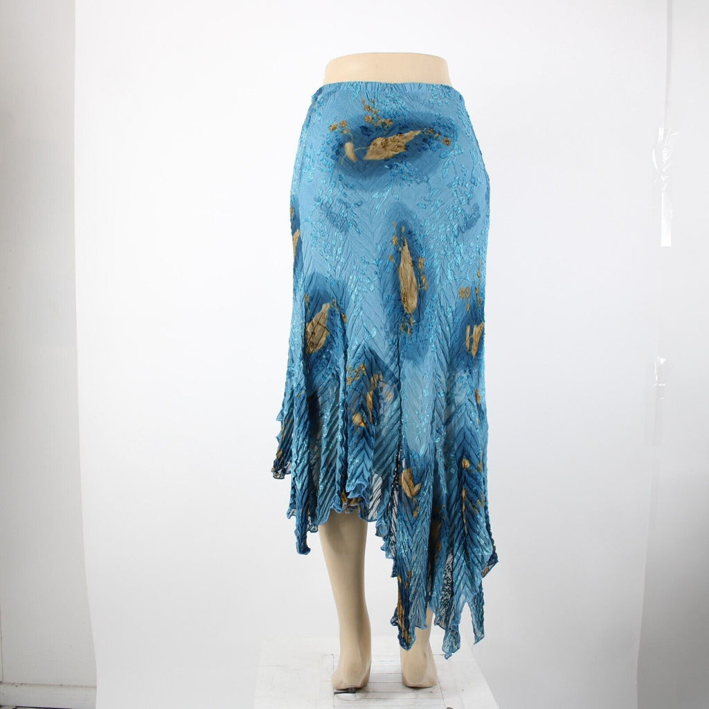 Komarov Sz S Blue Brown Elastic Waist Sheer Asymmetrical 100% Polyester Skirt