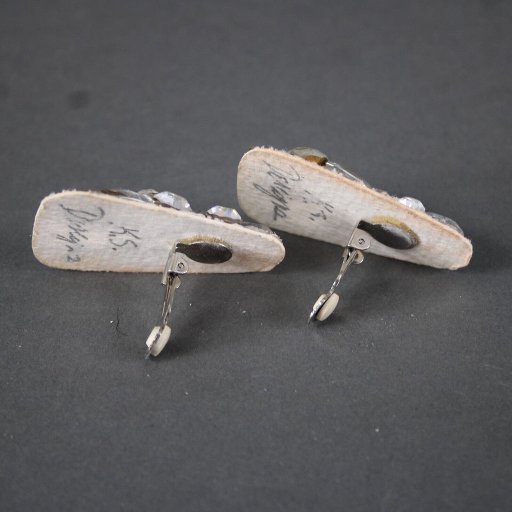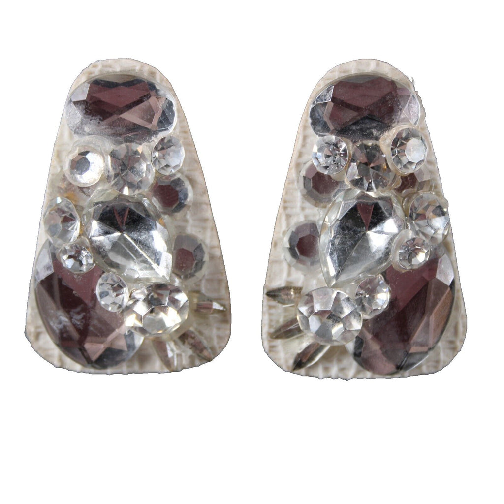 KS Designs 70's Vintage White Silver Rhinestones 2" Huggie Clip On Earrings