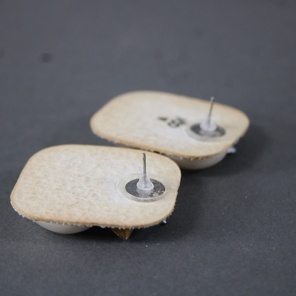 KSD VTG Cream Gold Faux Pearls AB Rhinestones Rectangular 1.5" Pierced Earrings