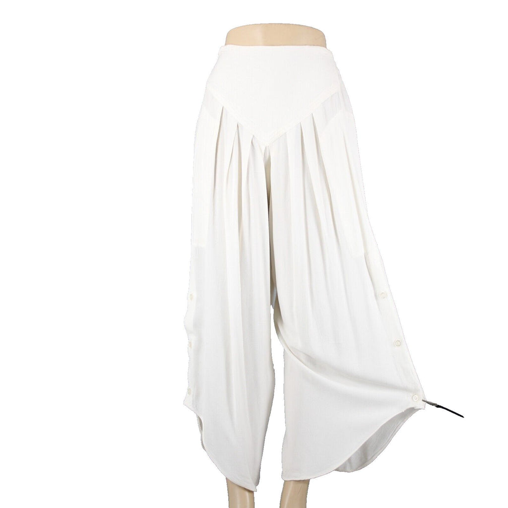 Laise Adzer Sz 4 x 26 Ivory White High Waisted Pleaded Front Flared Cotton Pant
