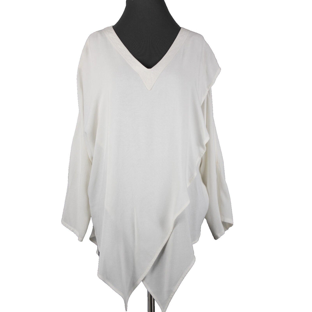 Laise Adzer Vintage Sz M Ivory White Tunic Layered Bohemian Cotton Rayon Top