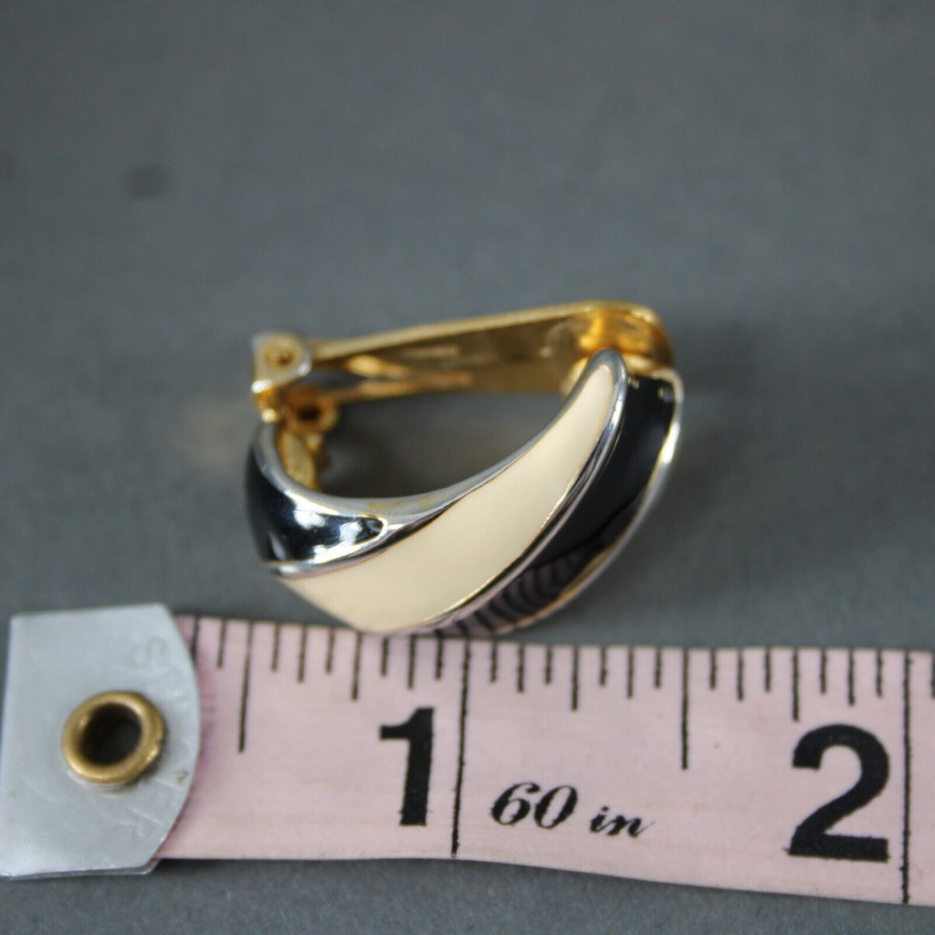 Landau Black Cream Enamel Goldtone Hoop 1" Clip On Earrings