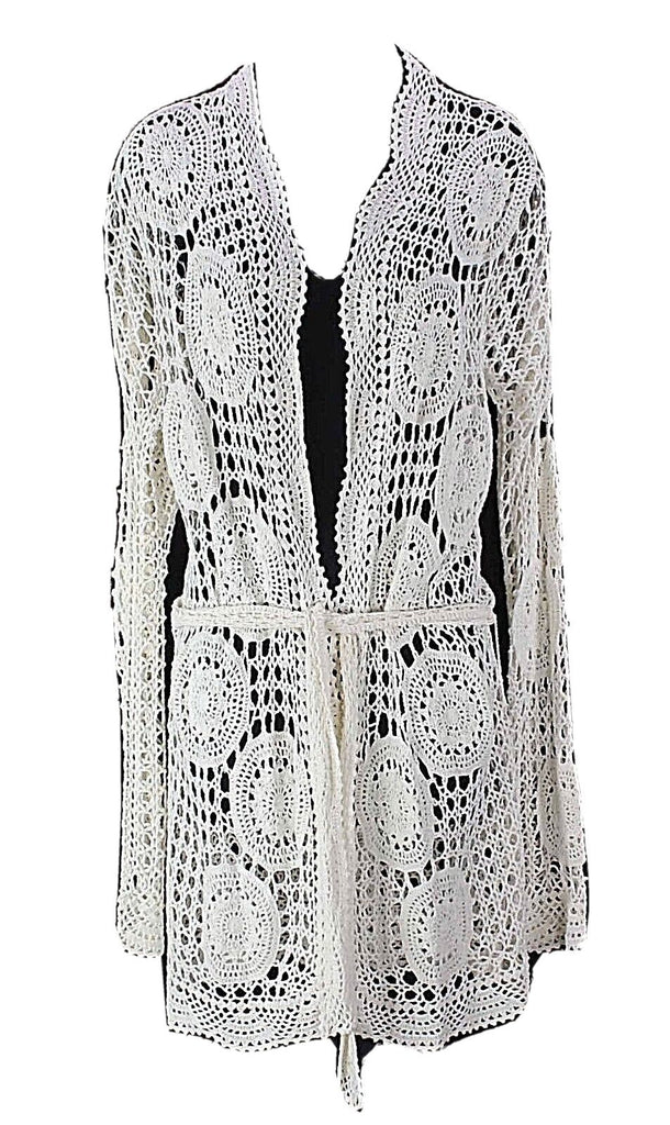 Laundry NEW $198 Sz M Cream Cotton Blend Crochet Bohemian Belted Wrap Jacket