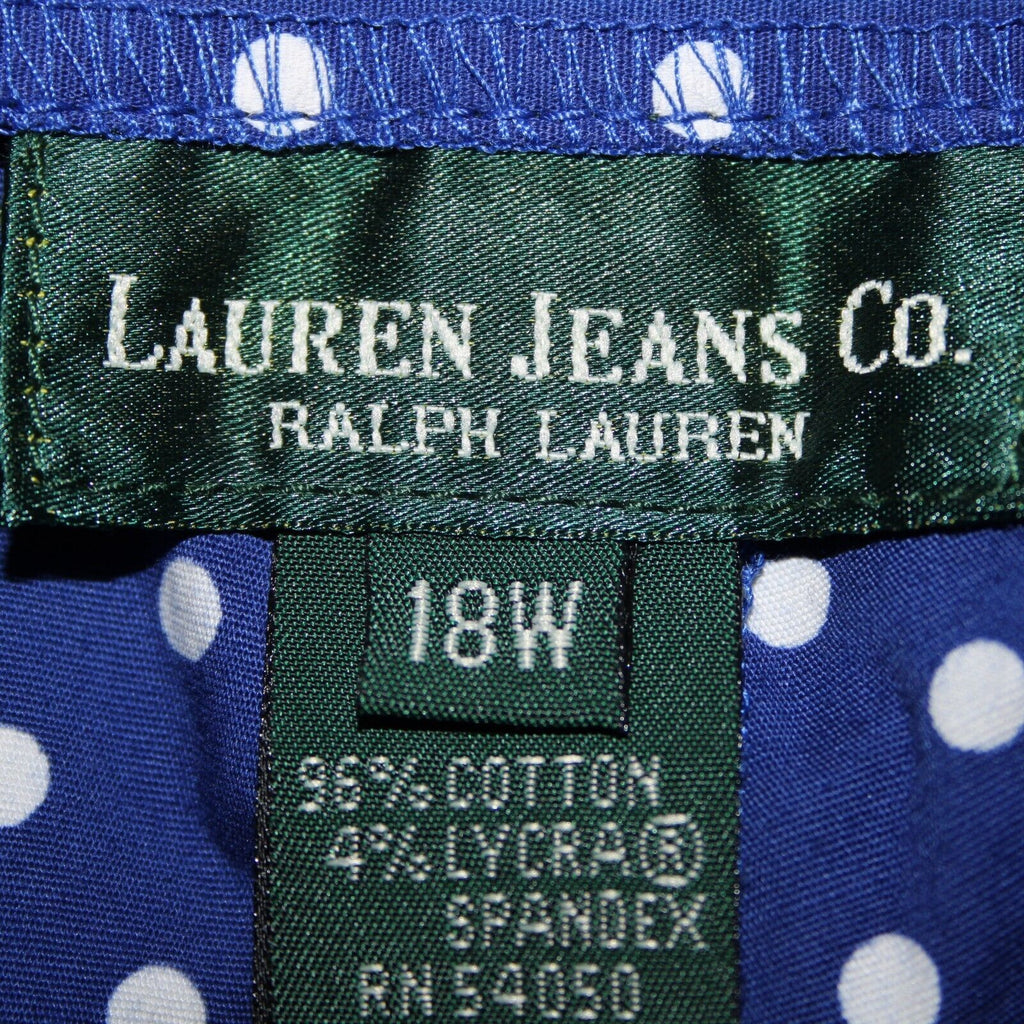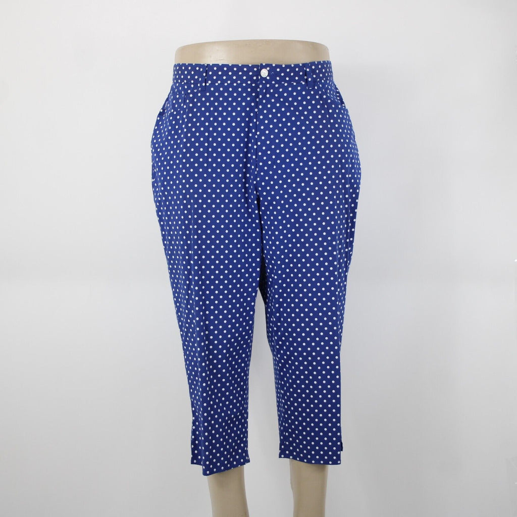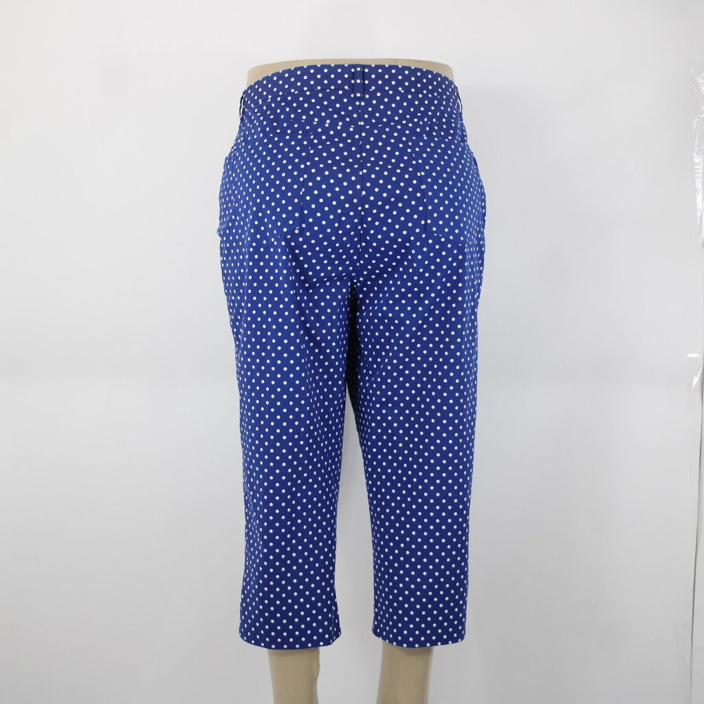 Lauren Jeans Sz 18W x 21.5 Royal Blue White Polka Dot Pocketed Cotton Capri Pant