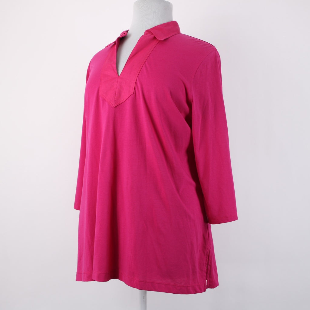 Lauren Ralph Lauren Top NEW $59 Sz 3x Pink Collared V Neck 100% Cotton Top
