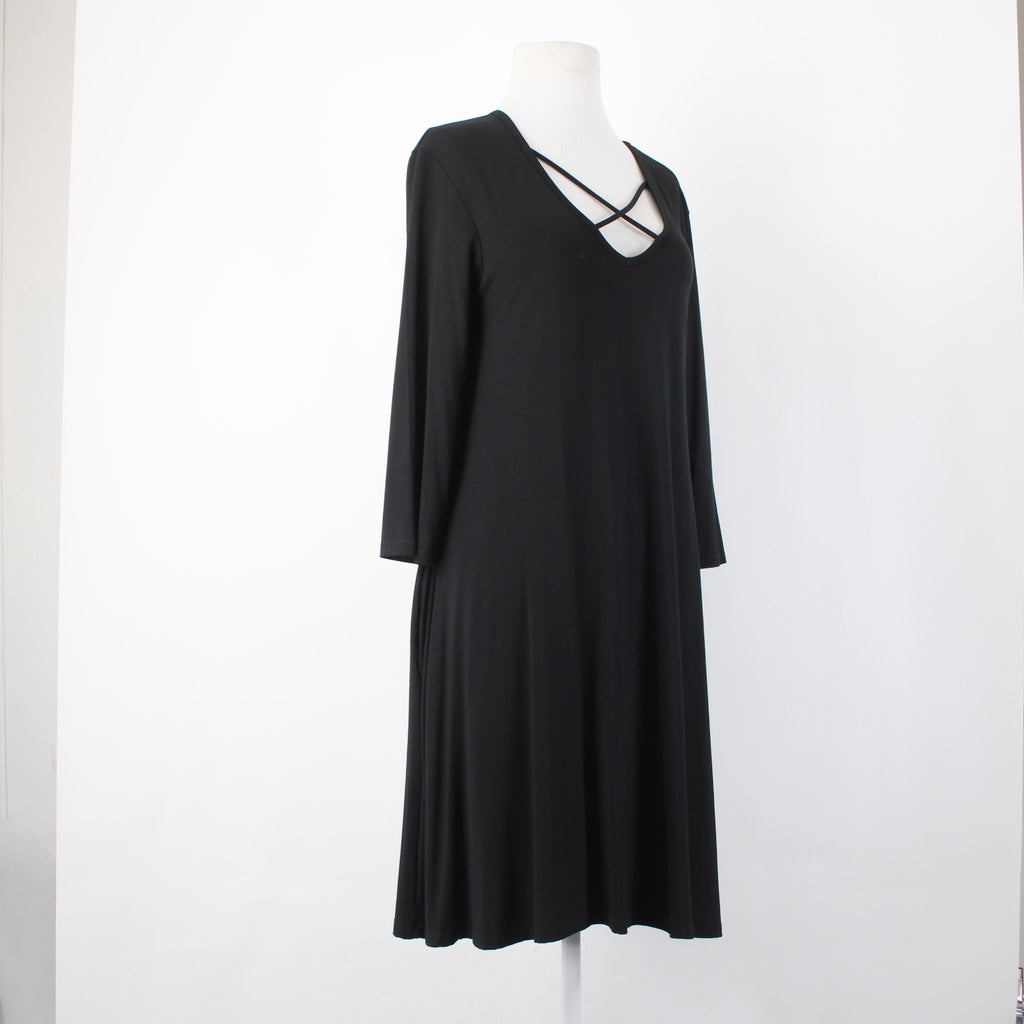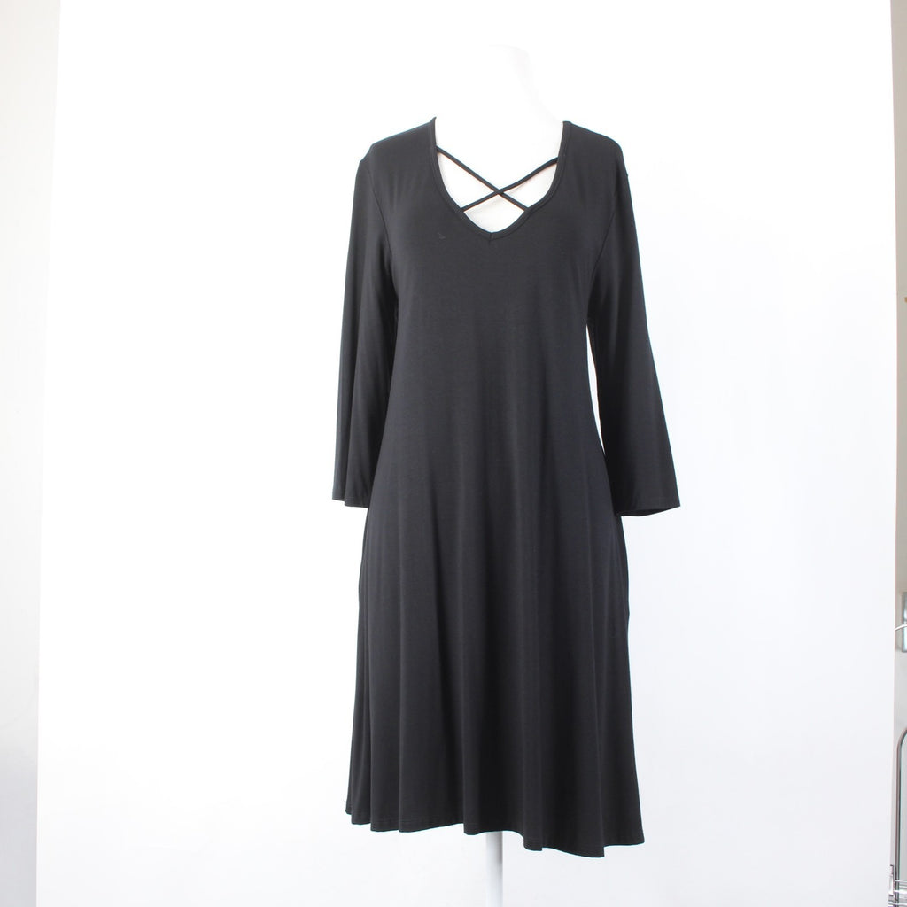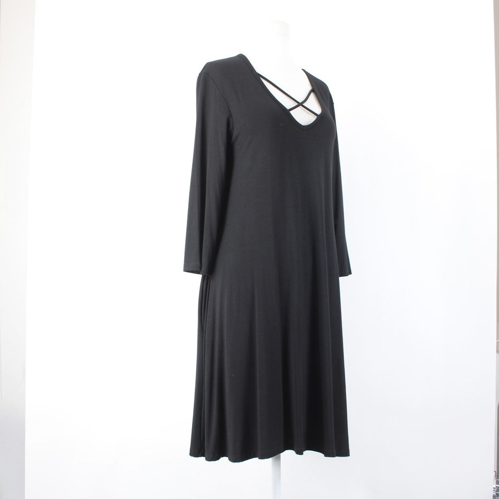 Lime N Chili Dress NEW $30 Sz L Black Criss Cross V Neck Rayon Spandex Dress