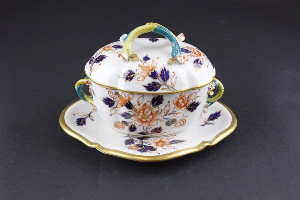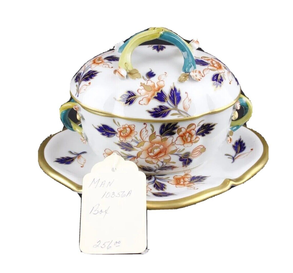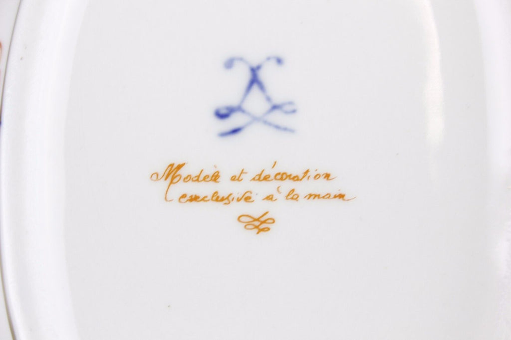Limoges ? $256 3 pc White Gold Cobalt Nutmeg Covered Serving Dish w Tray