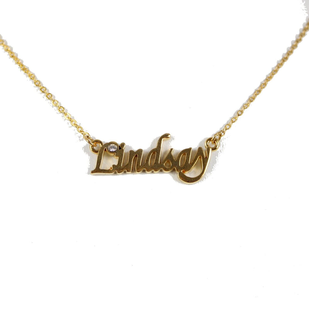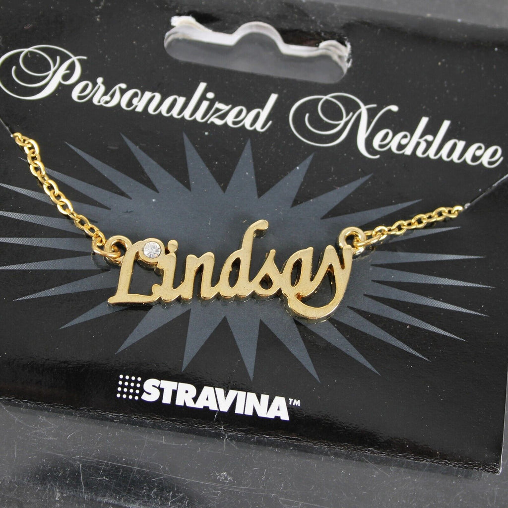 LINDSAY NEW Name Goldtone Rhinestone Accent 14.5" w 4.5" Multi Ring Ext Necklace