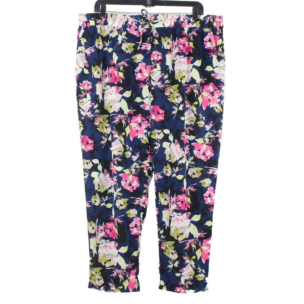 Liz Claiborne 2X x 31 Navy Multi Elastic Waist Pocketed 100% Polyester Pant