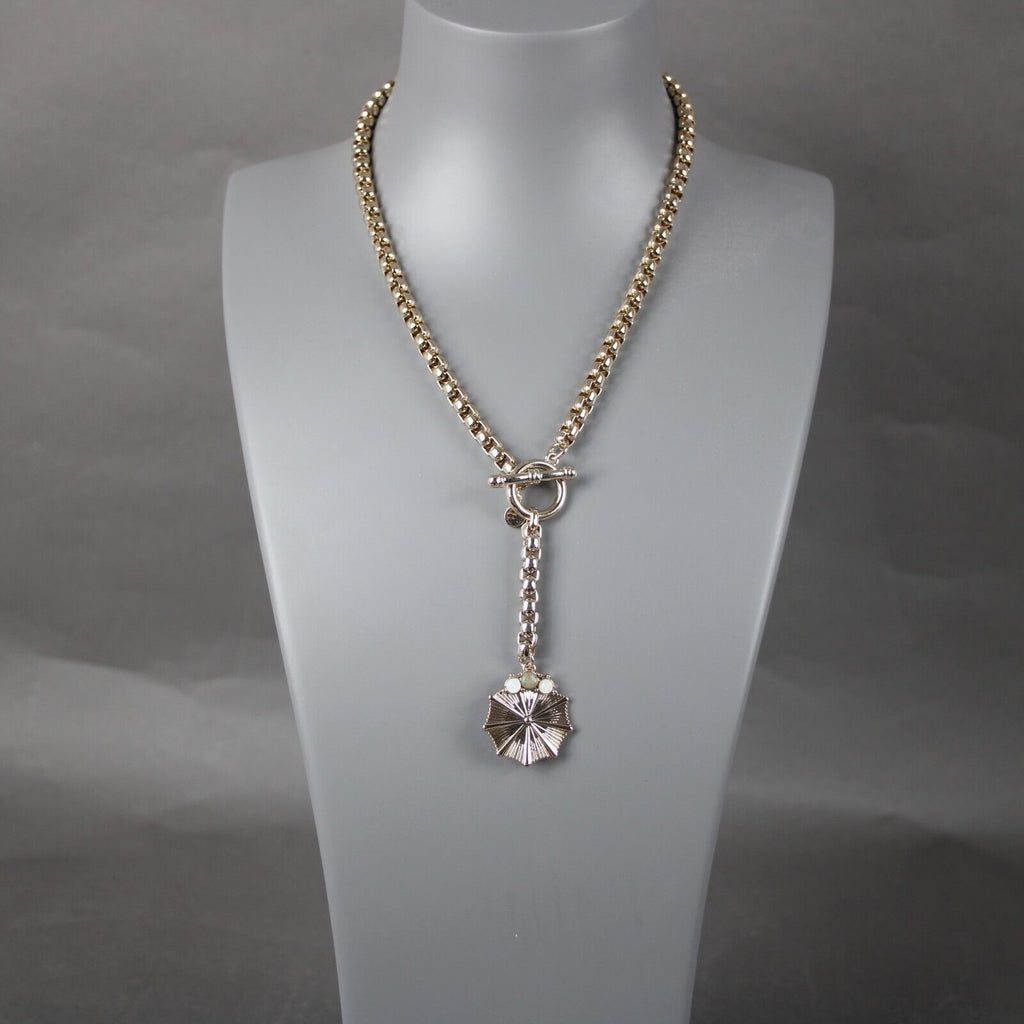 Loft NEW Goldtone Opalescent Chain Link 17" Lariat Necklace