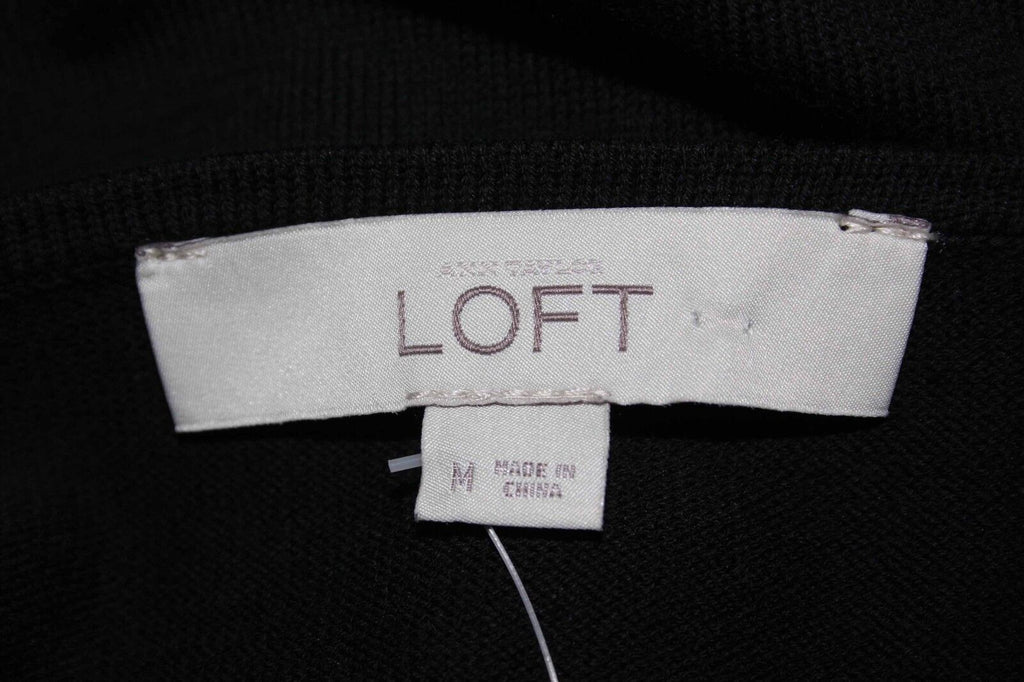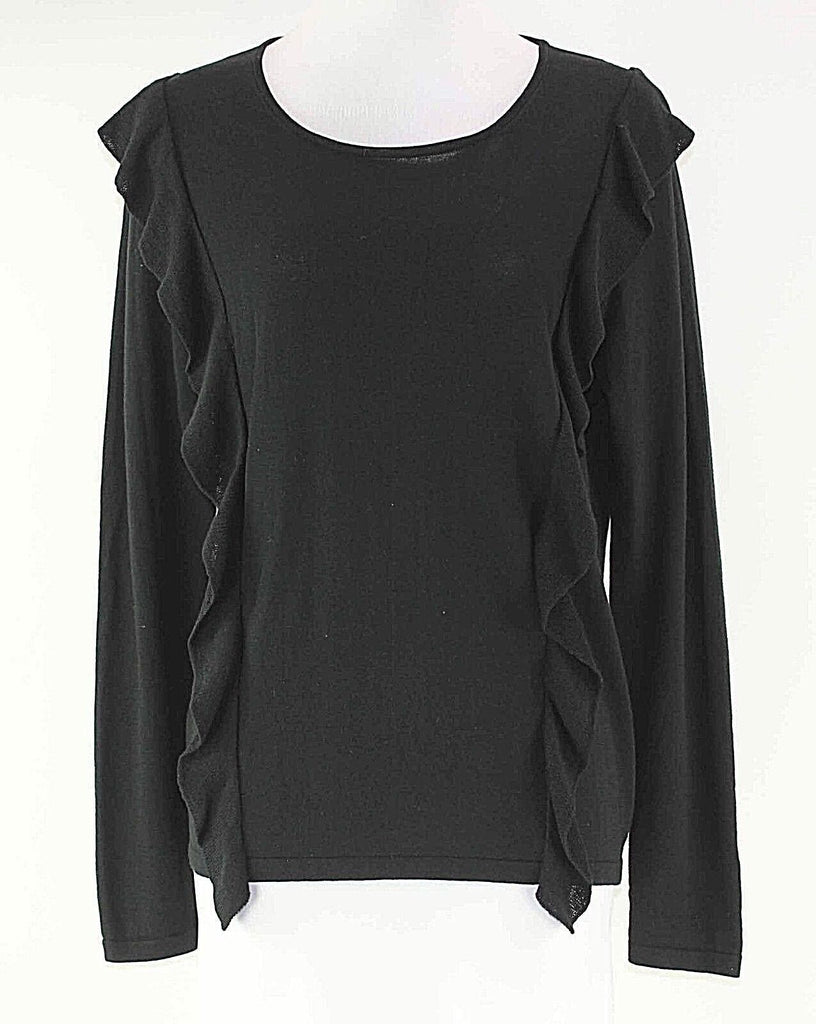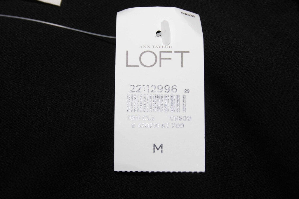 LOFT NEW Sz M Black Vertical Ruffle Front 100% Cotton Boho Knit Sweater Top