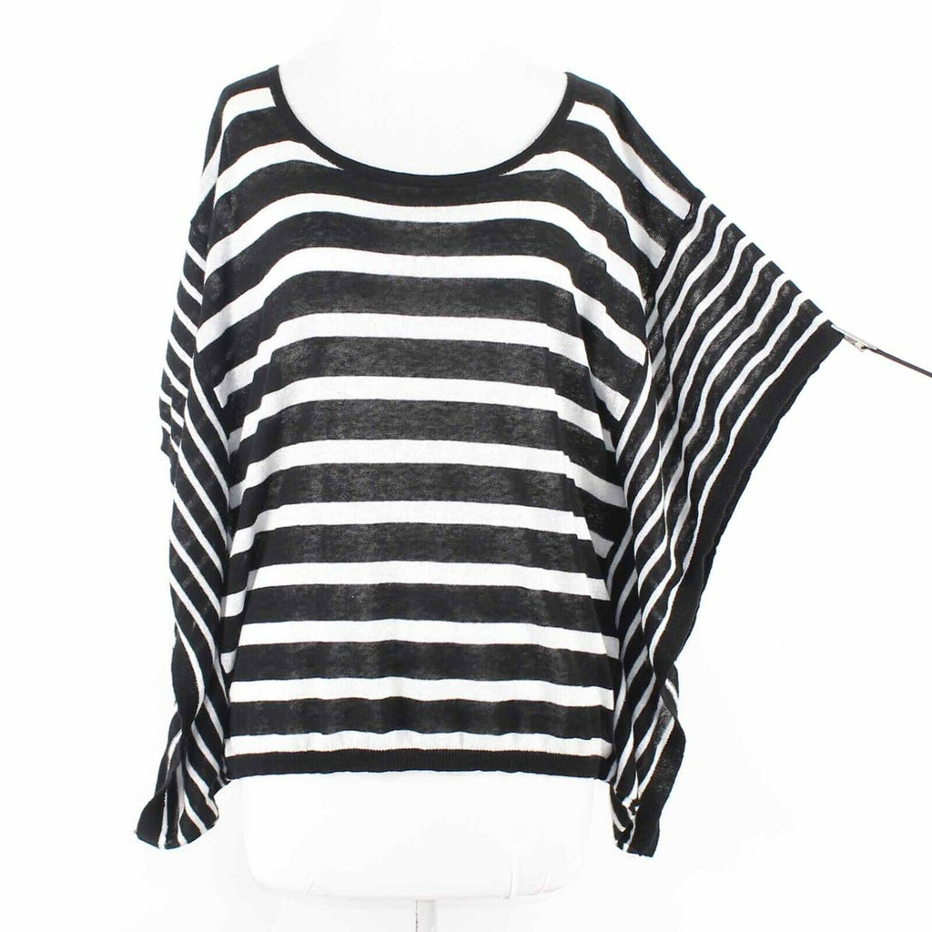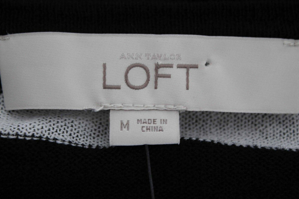 LOFT NEW Sz M Black White Stripe Knit Linen Cotton Casual Top