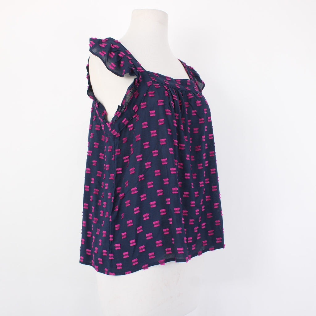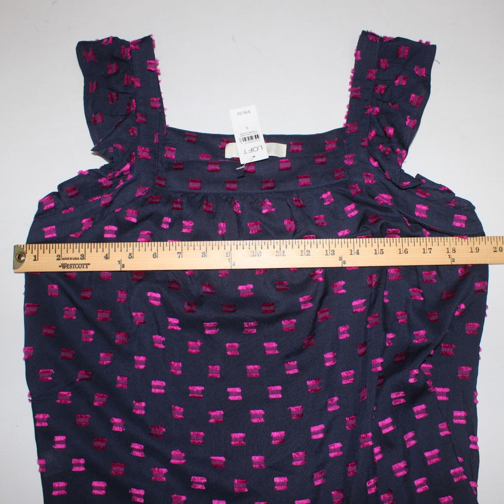 Loft Top NEW $57 Sz S Navy Blue Magenta Square Neck Hi Lo 100% Rayon Top