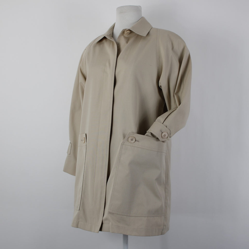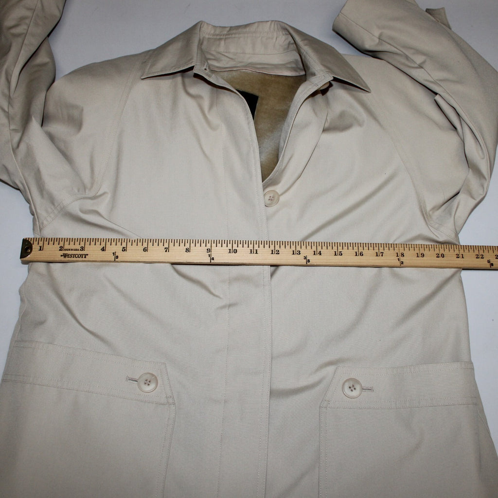 London Fog Sz 6 Petite Tan Brown Collared Pockets Mid Length Fleece Lined Jacket
