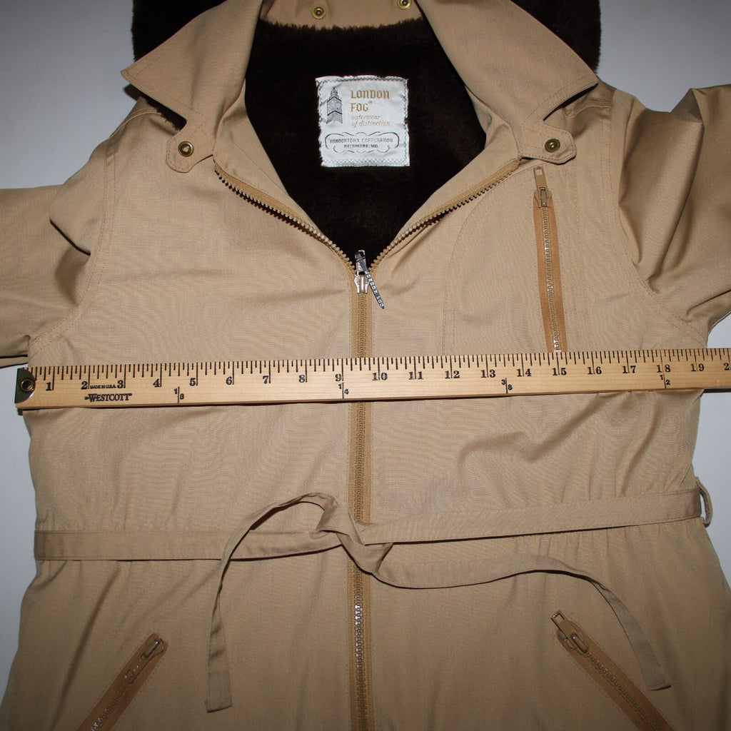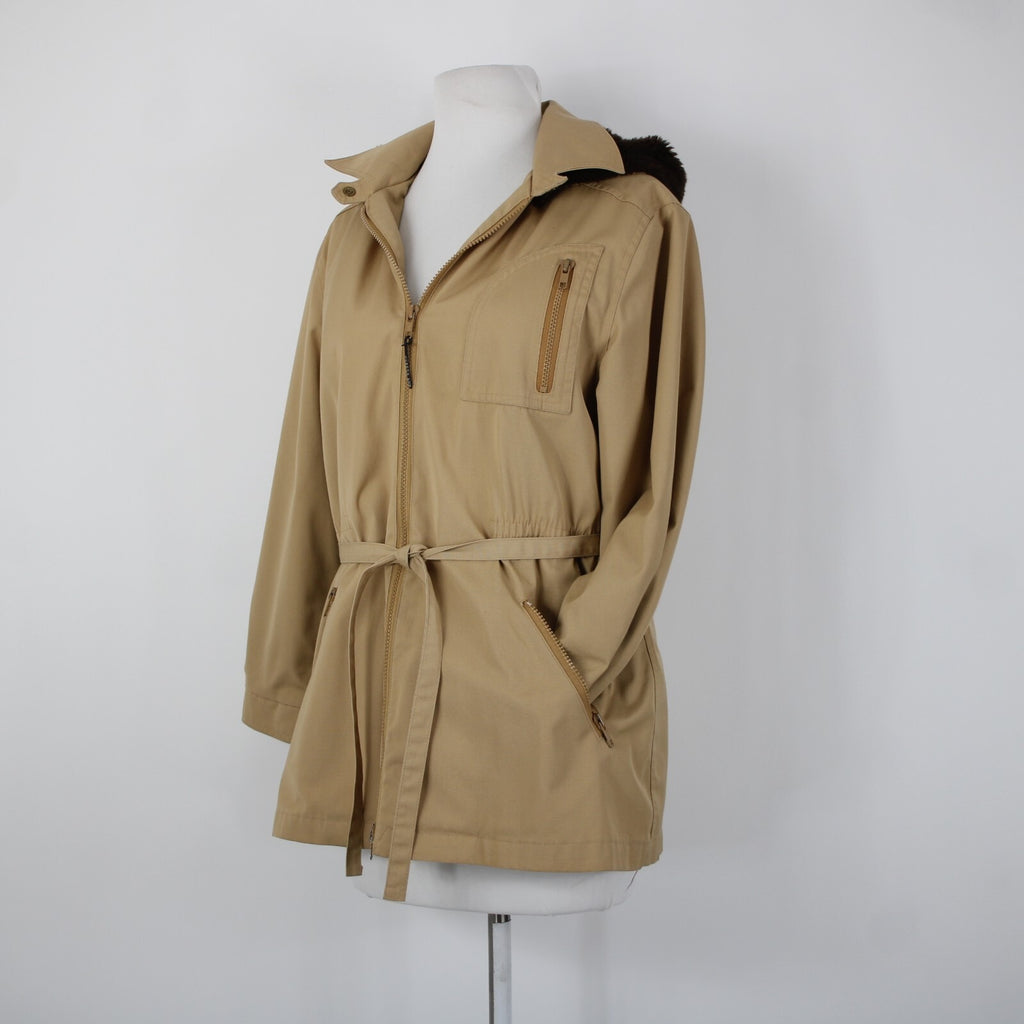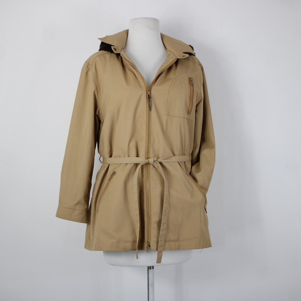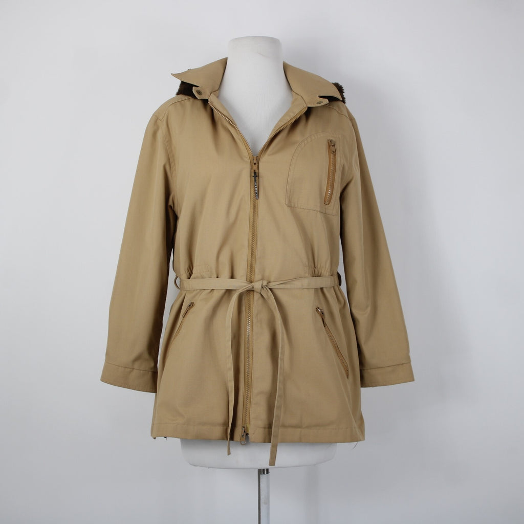 London Fog Sz S? Classic Tan Brown Lined Faux Fur Hooded Pockets Jacket