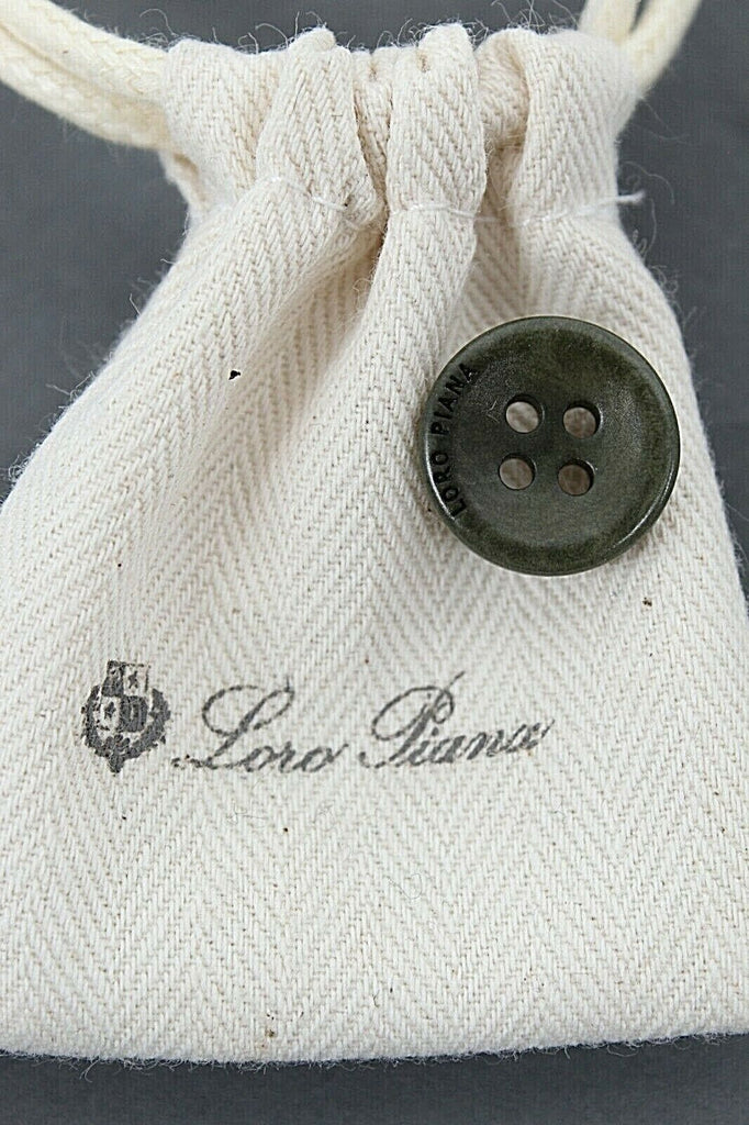 Loro Piana NEW Ivory Olive Green 100% Cotton Drawstring Pouch Spare Button
