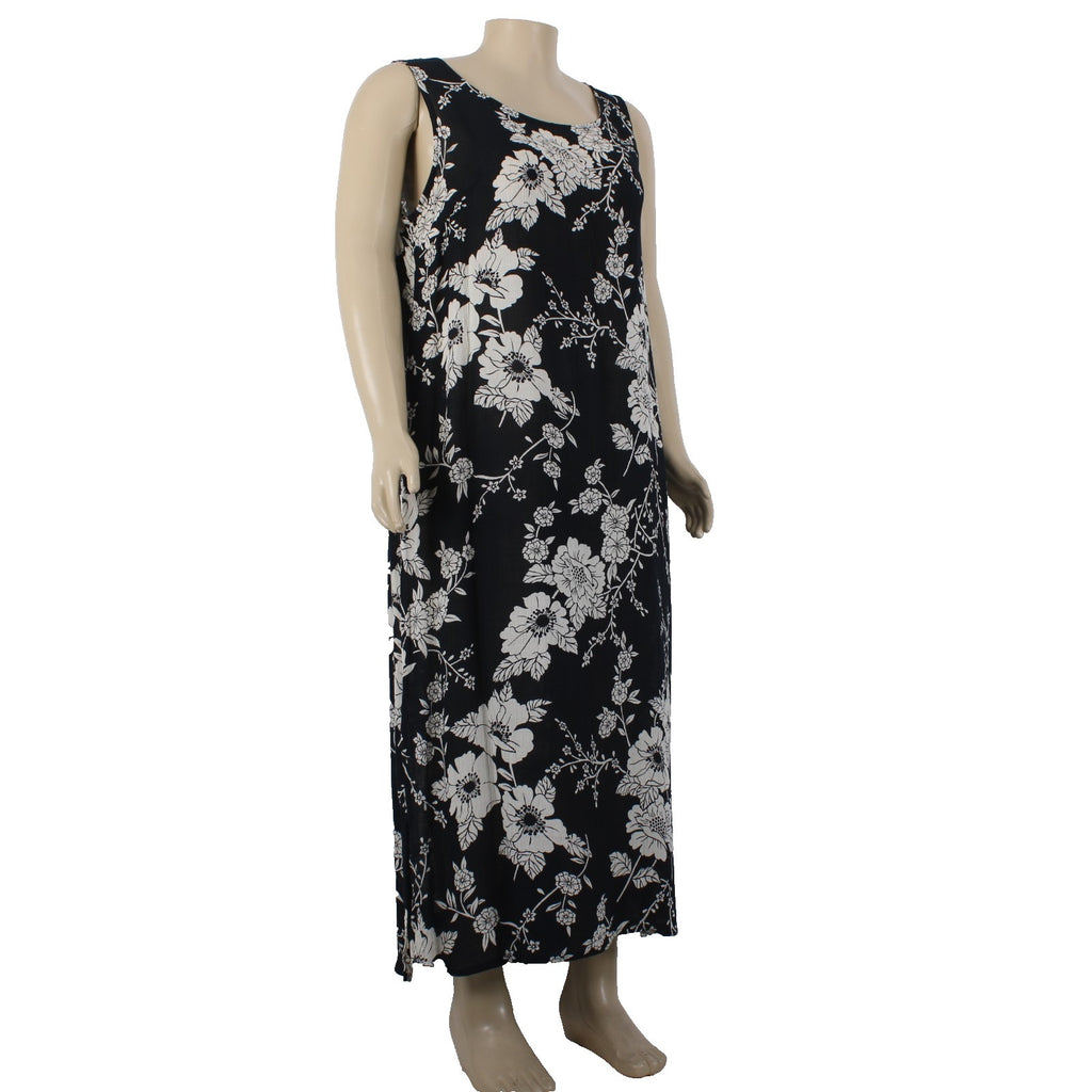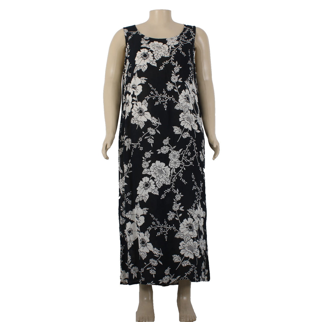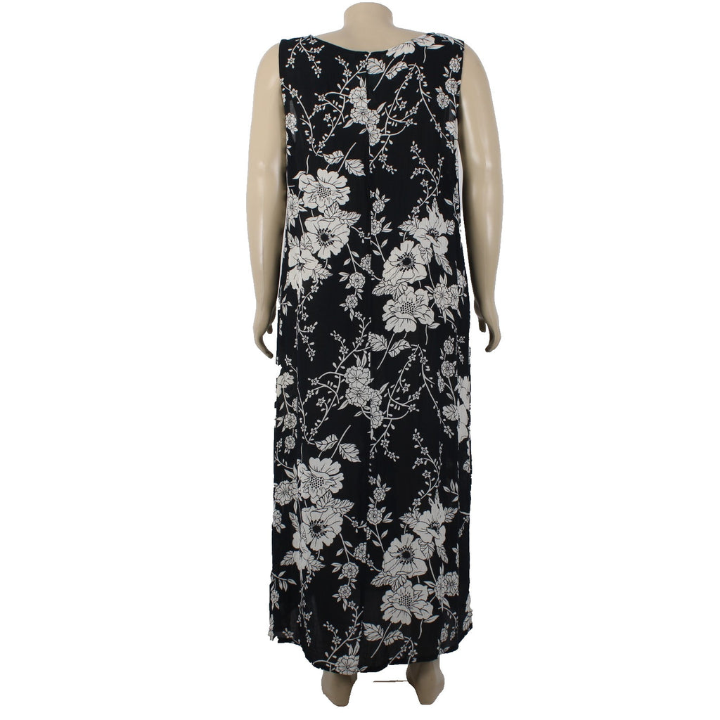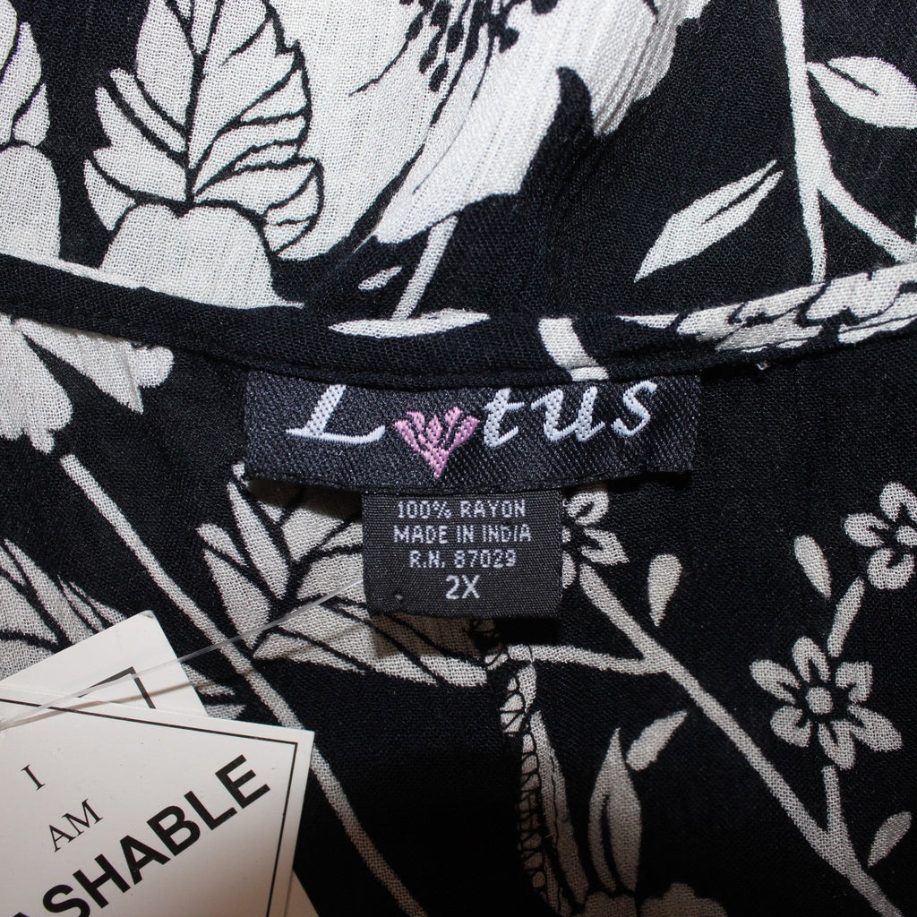 Lotus Dress NEW Sz 2X Black White Floral Unlined Sleeveless 100% Rayon Dress