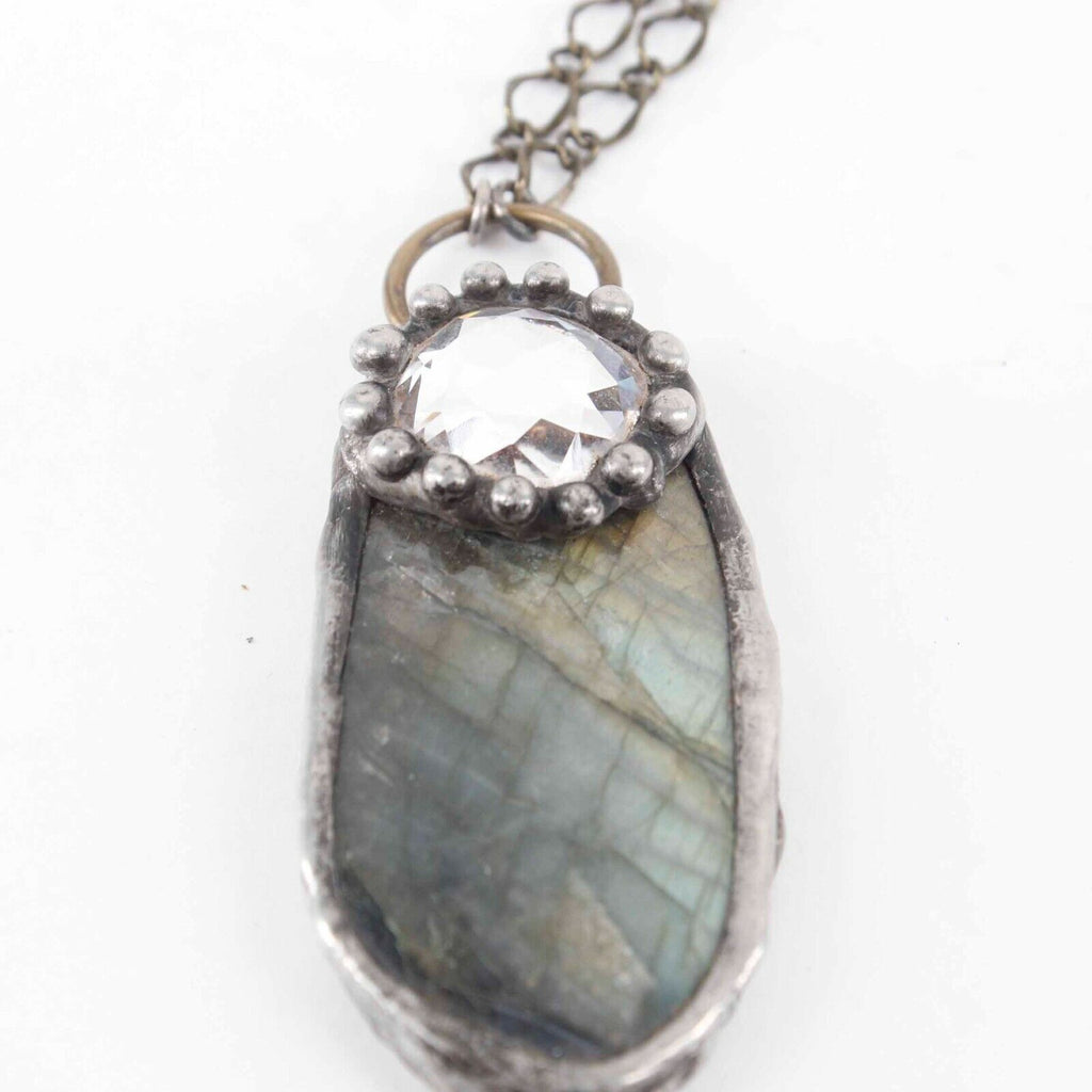 Luca 2018 NEW $207 Labradorite Swarovski Rhinestone 16" Chain Necklace