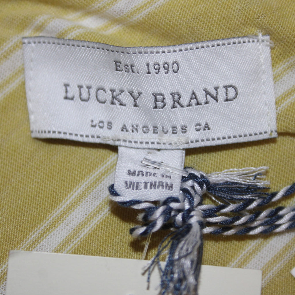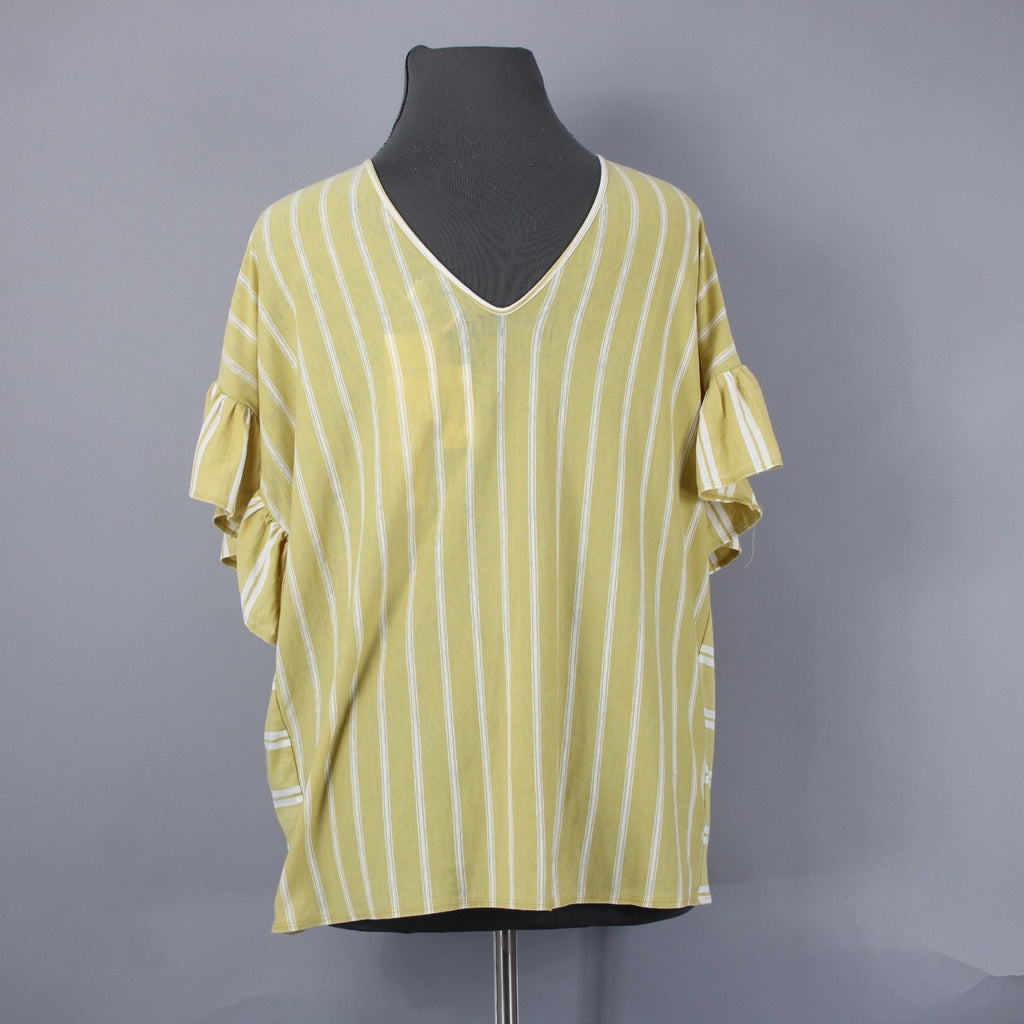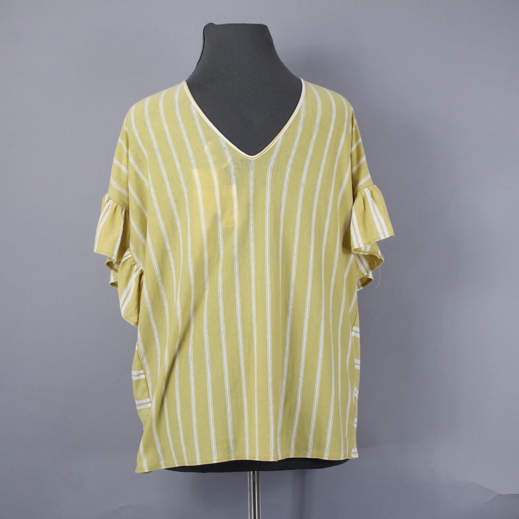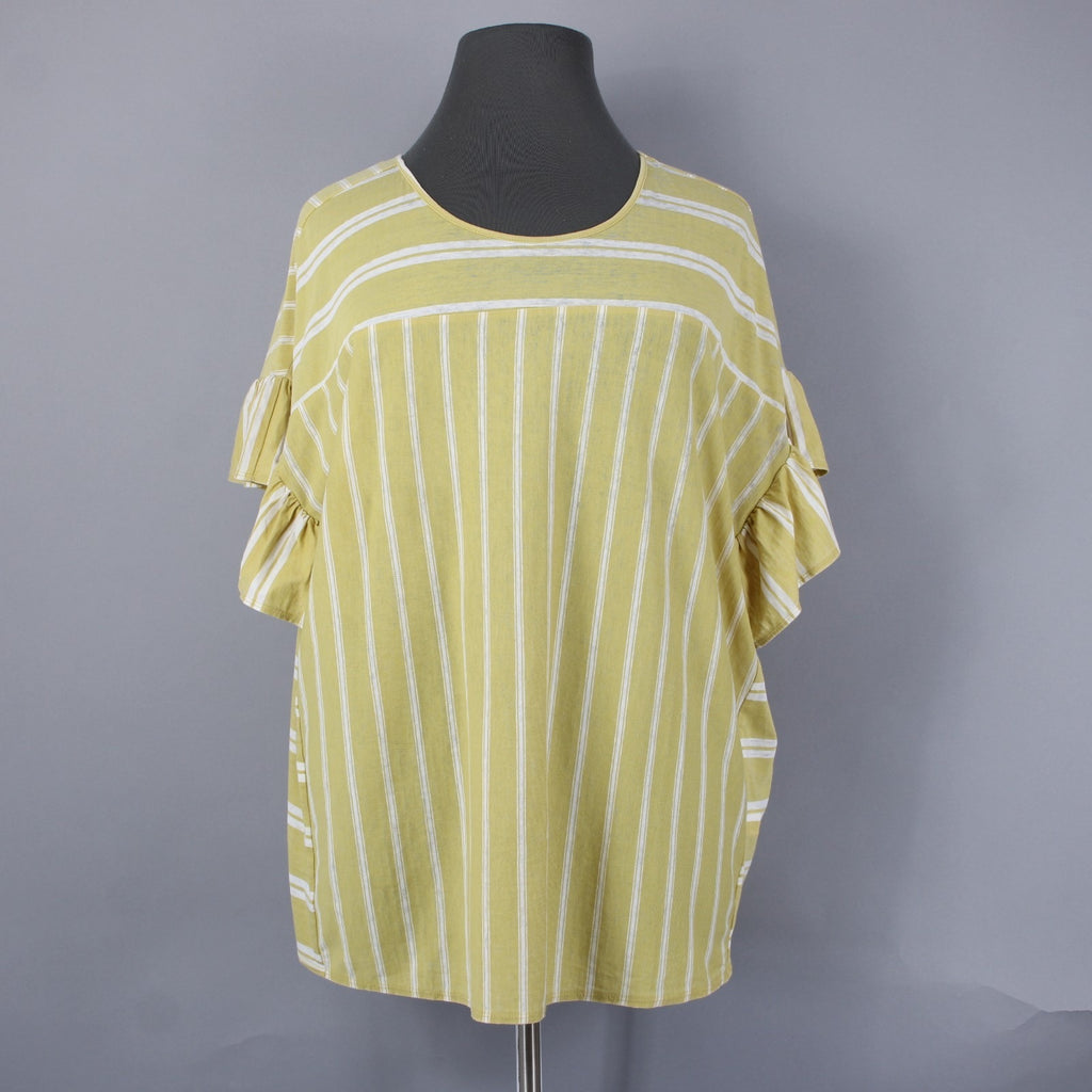 Lucky Brand NEW $50 Sz 2X Yellow White Ruffle Sleeves Striped Cotton Poly Top