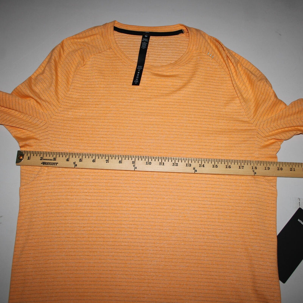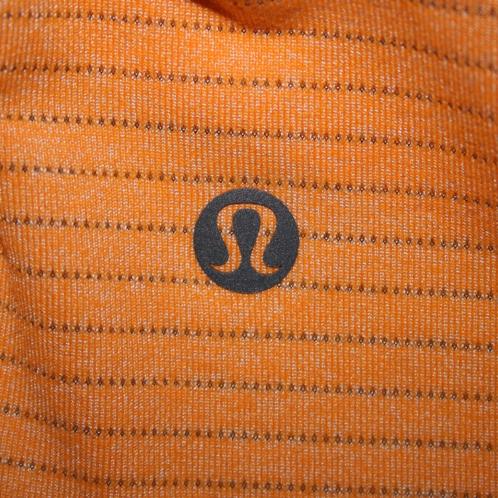 Lululemon NEW Sz M Orange White Gray Striped Dry Sense Long Sleeve Poly AW Top