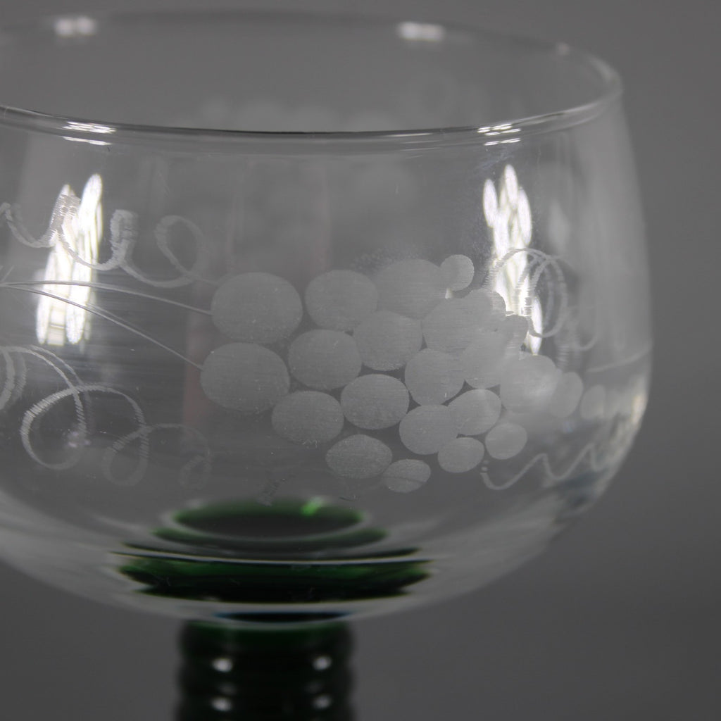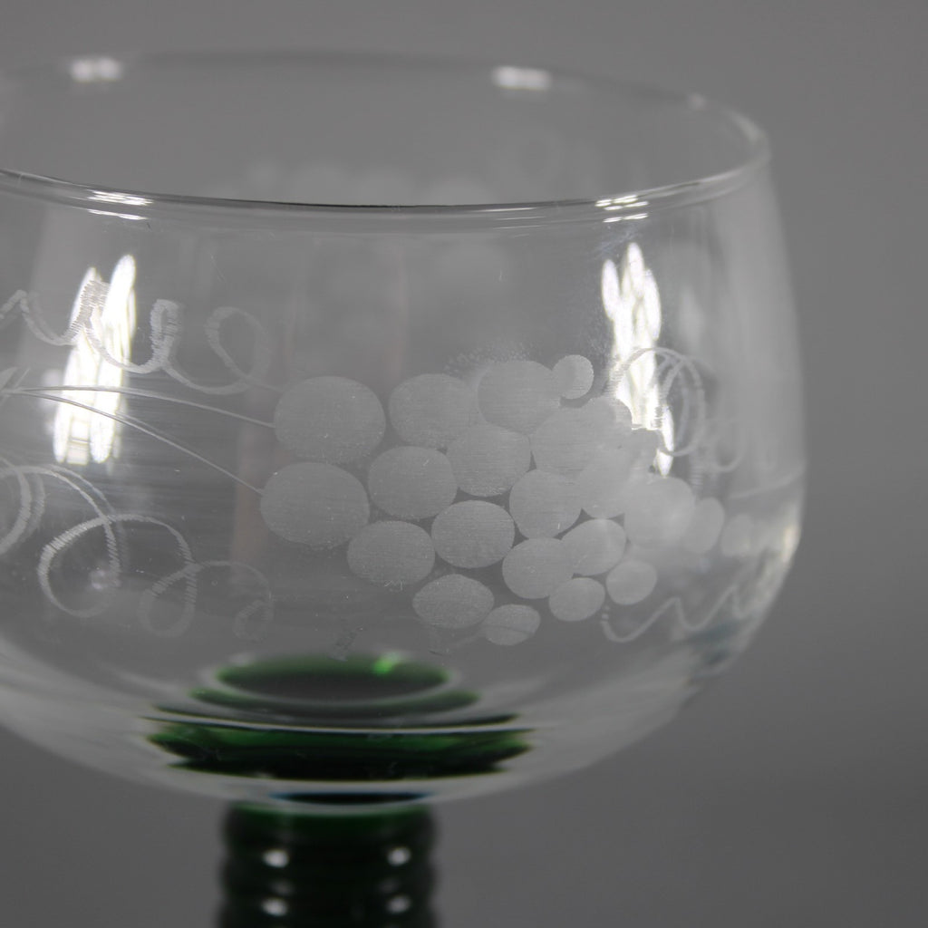 Luminare Wine Glass Clear Green Grape Vines Striated 5.25" Wine Glasses