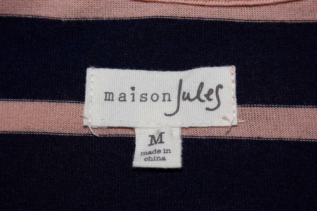Maison Jules Sz M Navy Peach Poly Striped Contrast Chiffon Poly Rayon Top