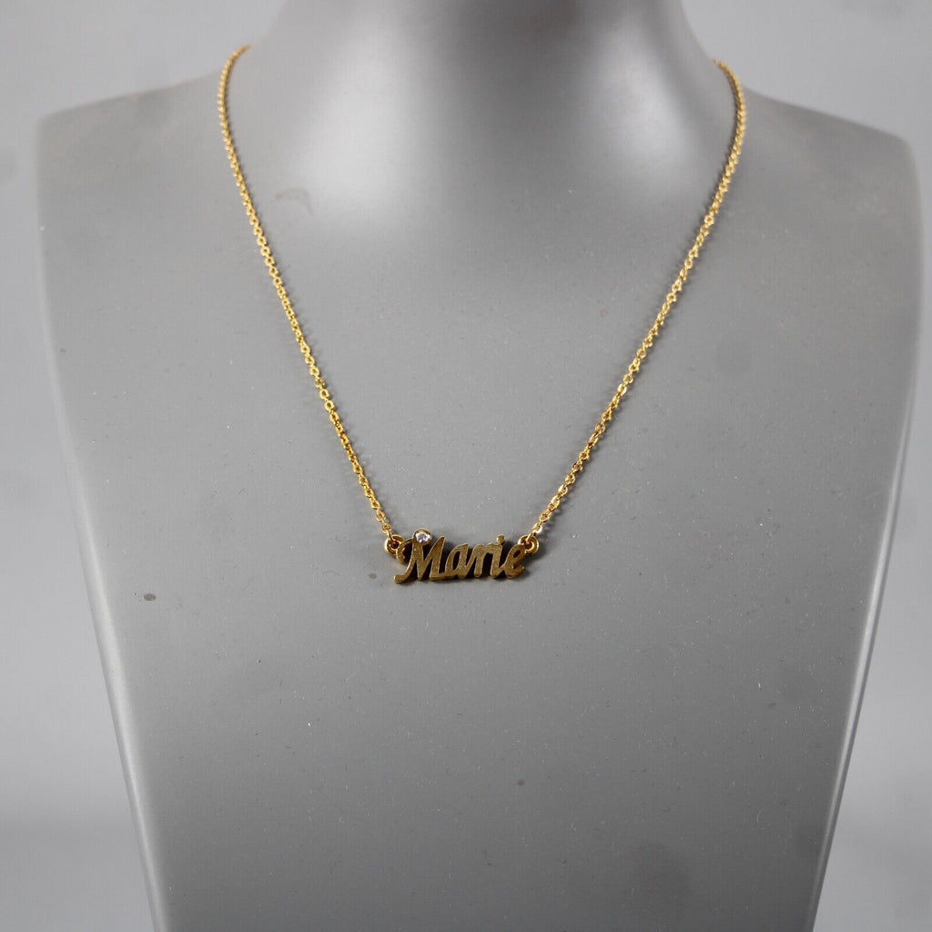 MARIE NEW Name Goldtone Rhinestone Accent 14.5" w 4.5 Multi Ring Ext Necklace