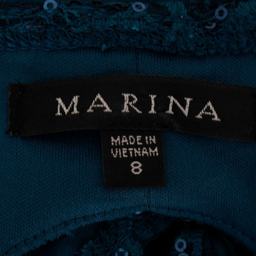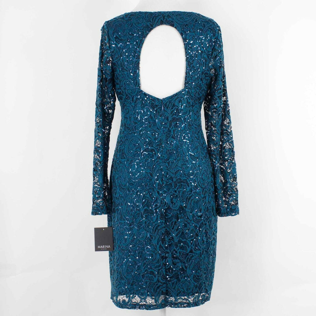 Marina NEW Sz 8 Teal Blue Lace Overlay Sequin Open Back Nylon Spandex Dress