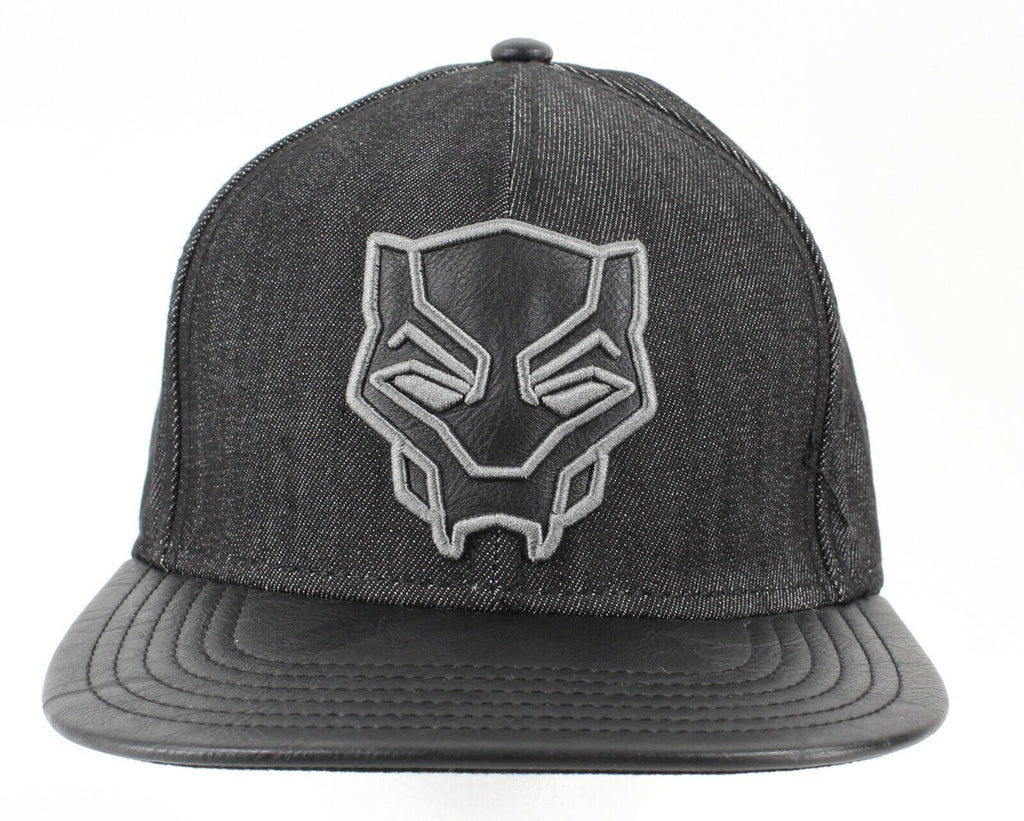 Marvel Black Panther Emblem Black Denim Adj 100% Cotton Faux Leather Cap