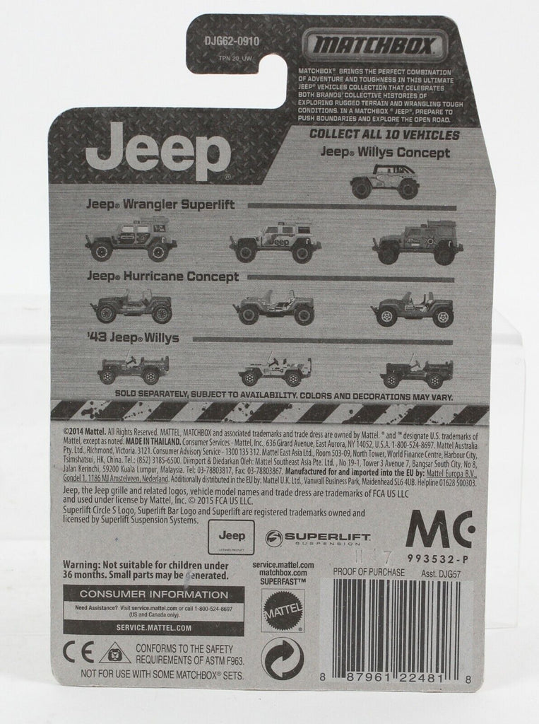 Mattel 2014 NEW Matchbox 1943 Jeep Willys Yellow 2.5" Jeep