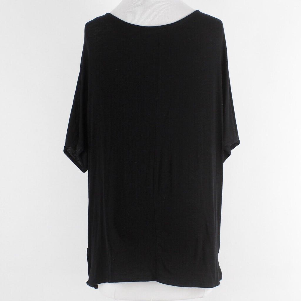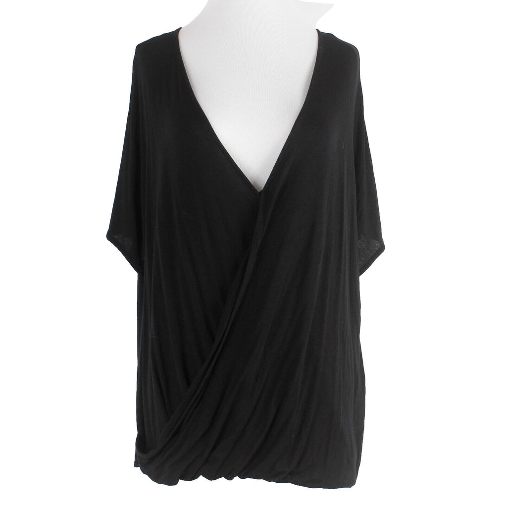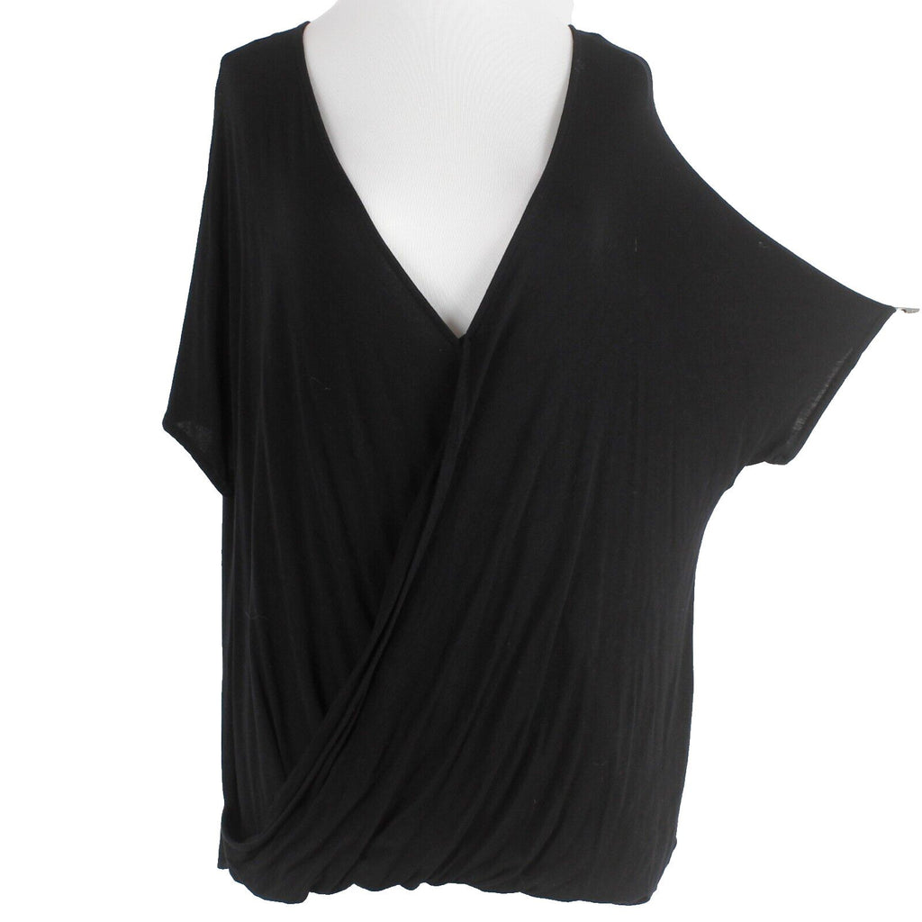 Matty M Sz S Black Drape Front Deep V Short Dolman Sleeve Rayon Blend Knit Top