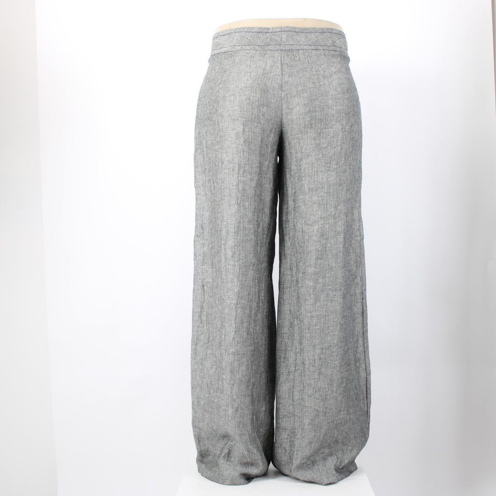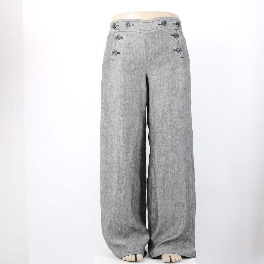 Max Studio Pant NEW $118 Sz 14 x 34 Black White Button Front 100% Linen Pant