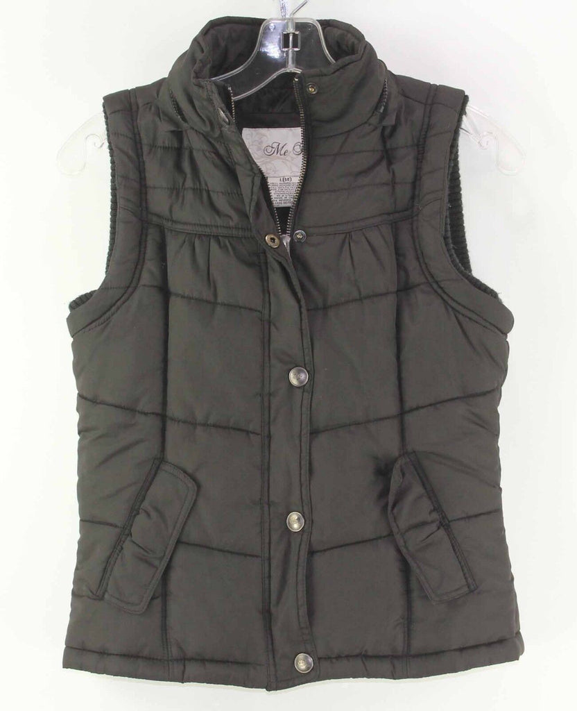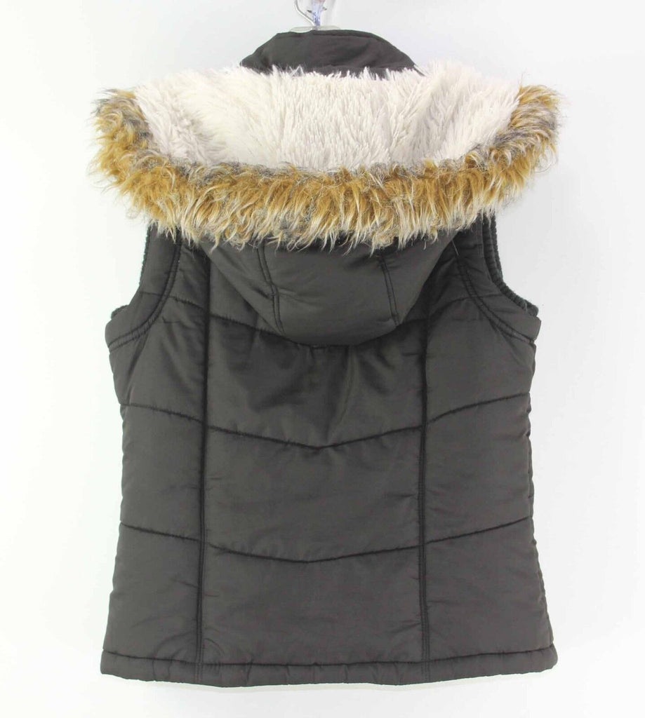 Me Jane Sz 14 Brown Poly Tan Faux Fur Trimmed Detachable Hooded Vest