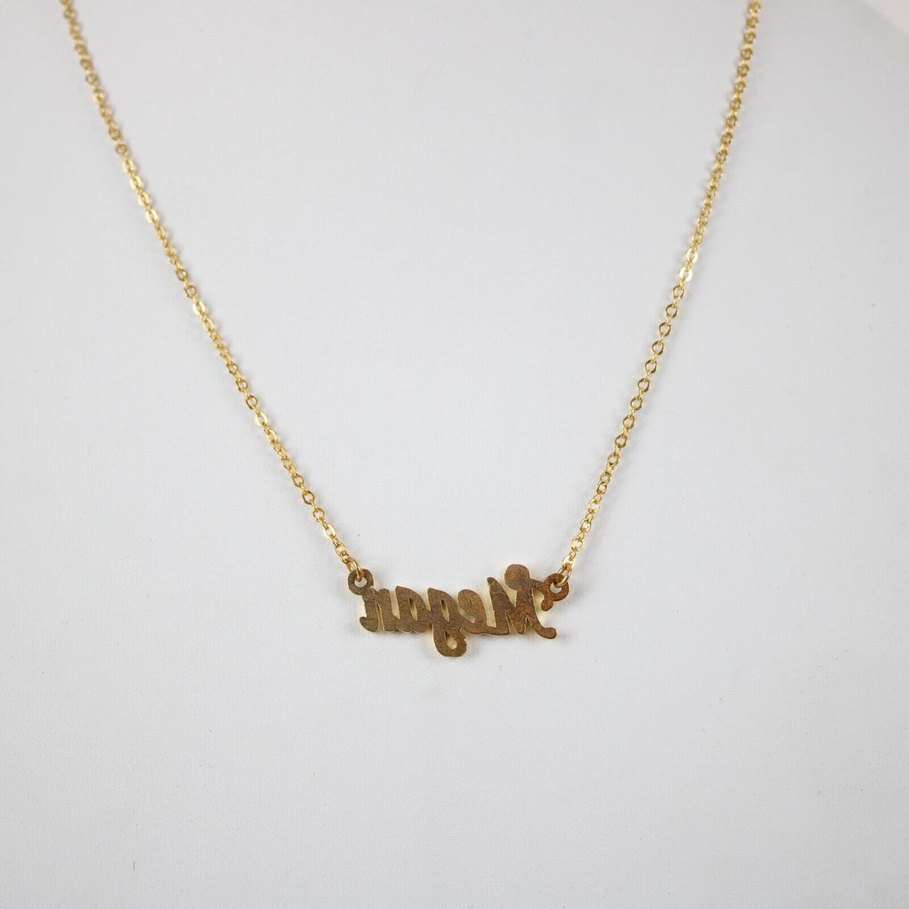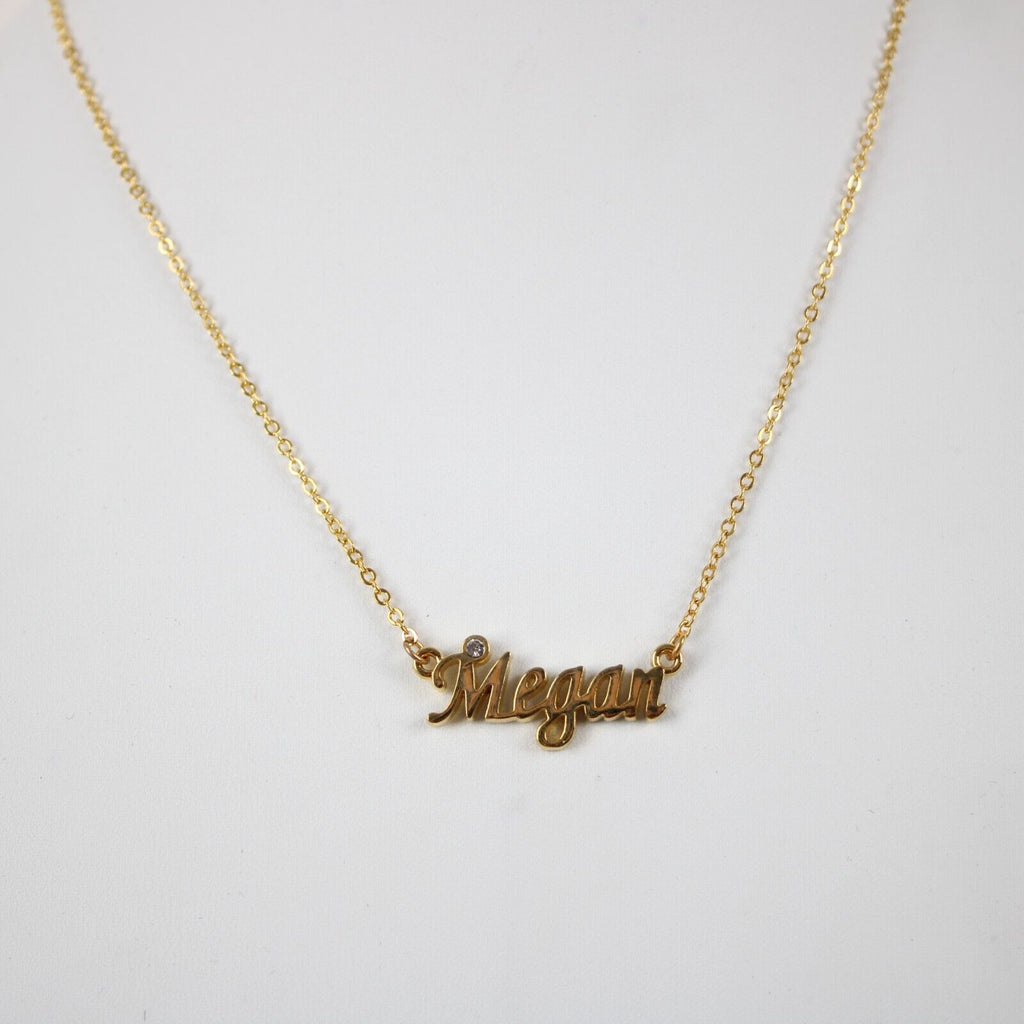 MEGAN NEW Name Goldtone Rhinestone Accent 14.5" w 4.5" Multi Ring Ext Necklace