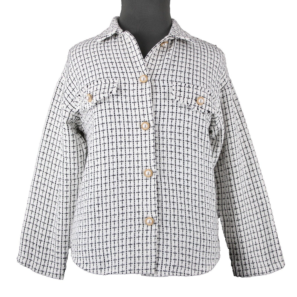 Mi Ami NEW $66 Pearlbutto Sz M Black White Faux Pearls 100% Polyester Jacket