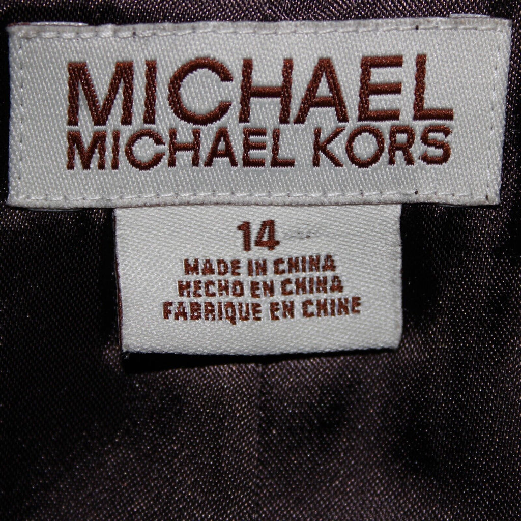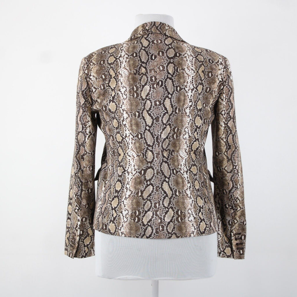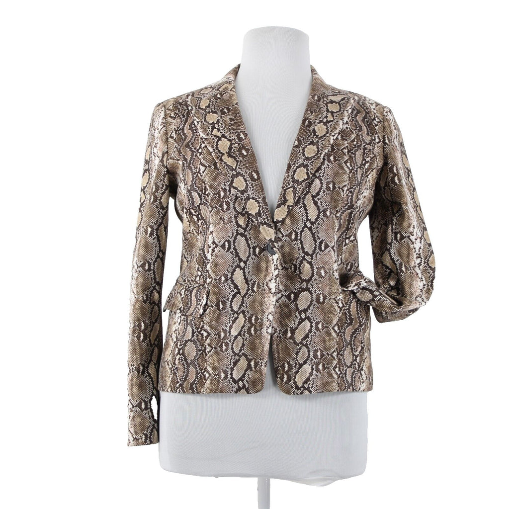 Michael Kors Sz 14 Brown White Retile Print Collared Pockets Lined Cotton Jacket