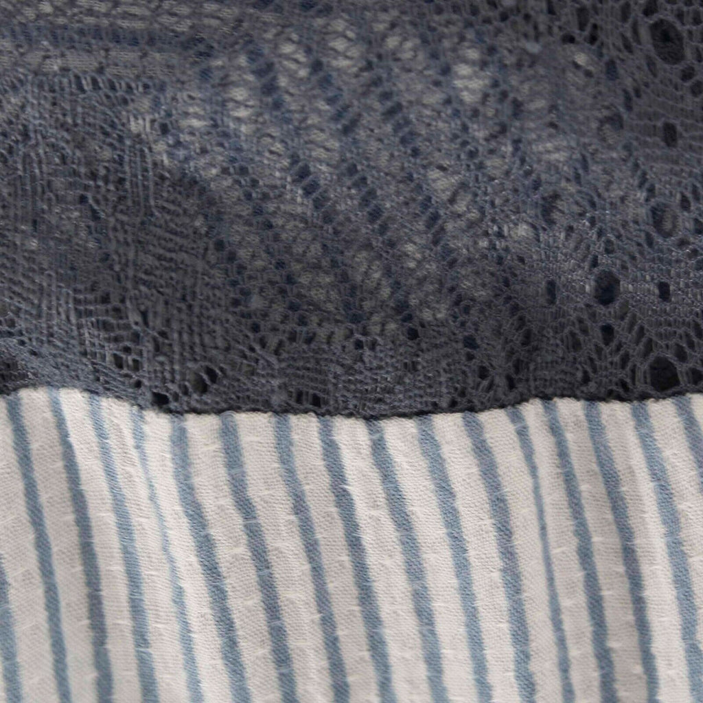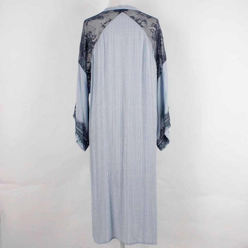 Midnight Bakery Sz L Navy Blue White Striped Lace 100% Rayon Nylon Wrap Sweater