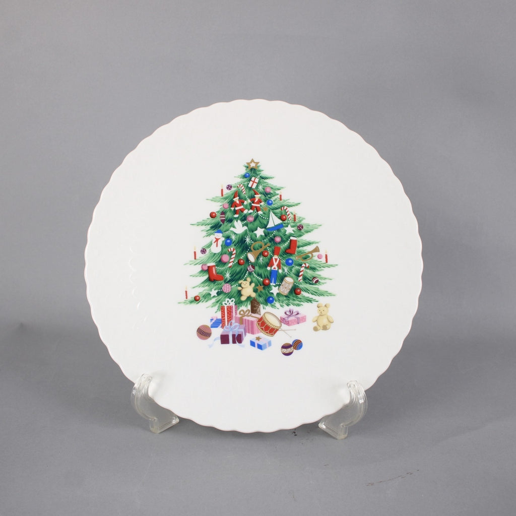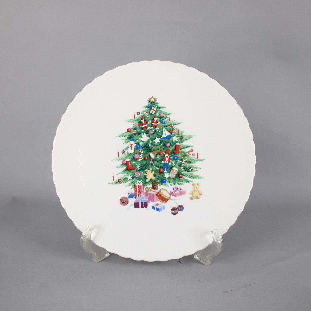Mikasa Cake Plate And Server Set Christmas Spirit White Multi Colored Bone China