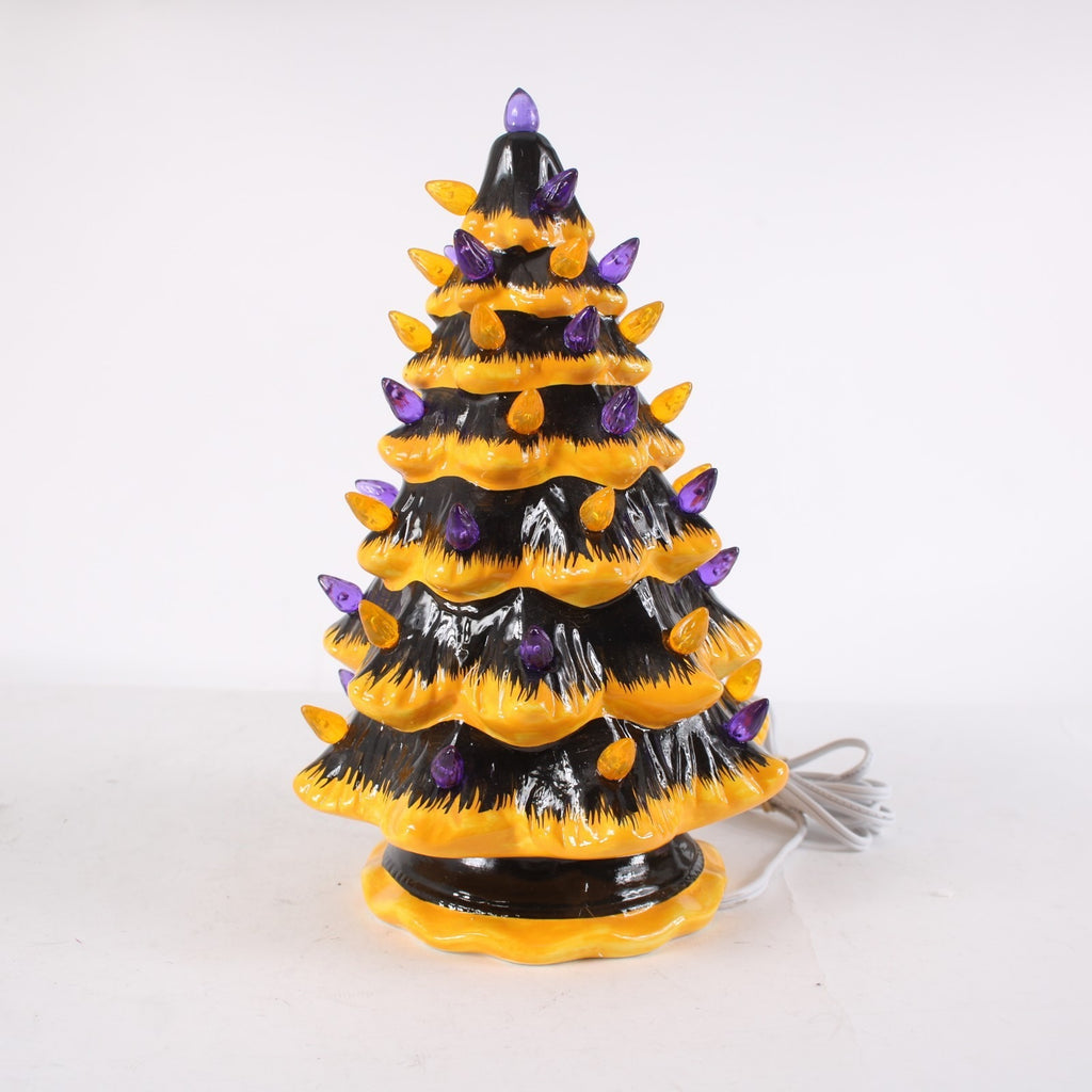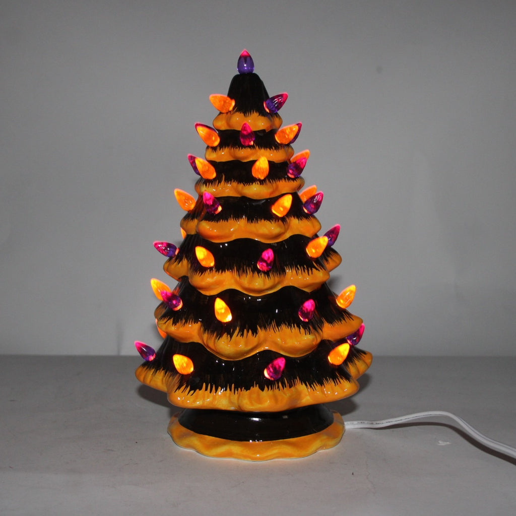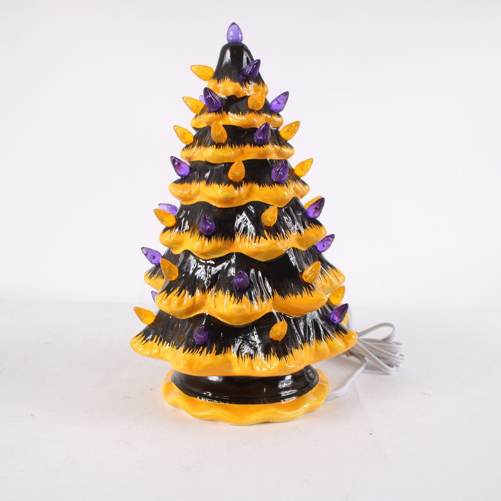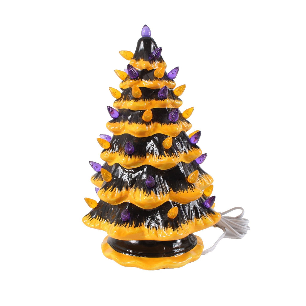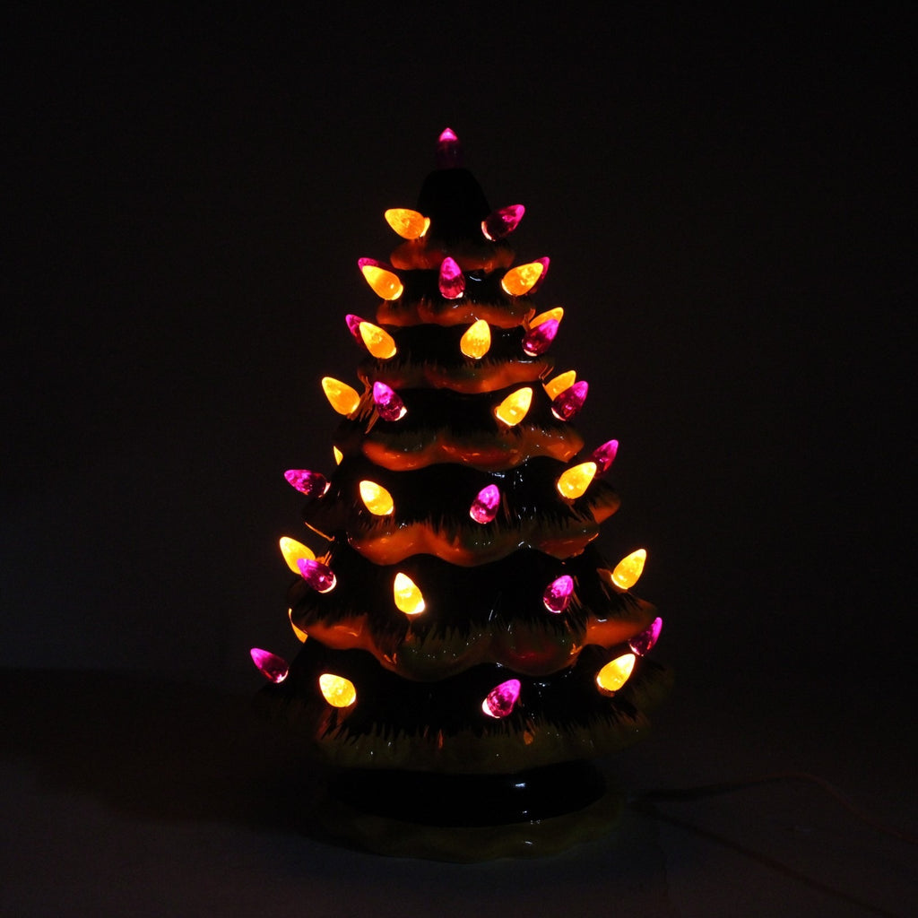 Milltown Merchants Christmas Tree Black Orange Purple Ceramic Lights Up Tree