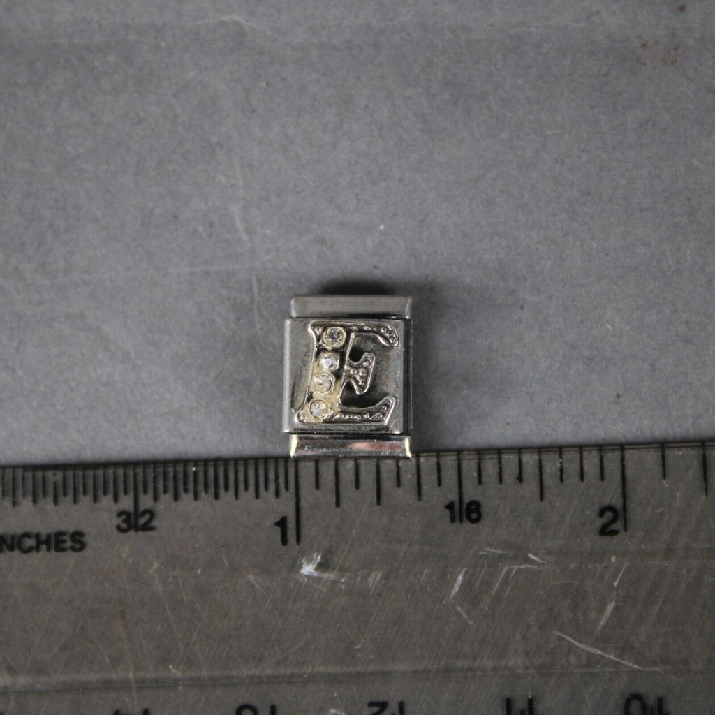 Milton Firenze "E" Gold CZ Stainless Elastic Stretch Chain Link Italian Charm